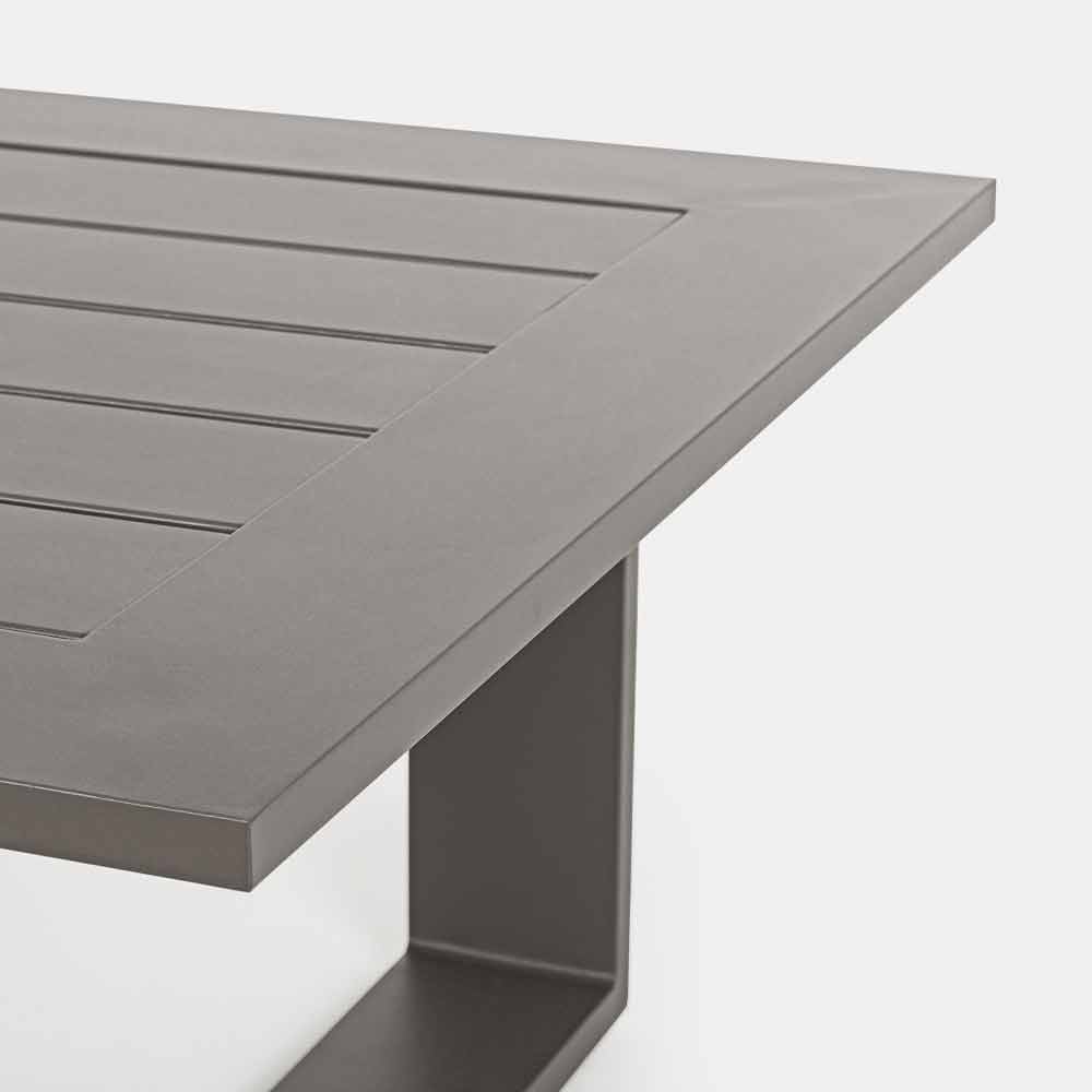 Estructura de aluminio pintado en polvo (poliéster). Cojines de asiento y respaldo desenfundables con tejido de olefina (100% polipropileno). Pies ajustables. Tornillos de acero inoxidable. Para ser ensamblado.