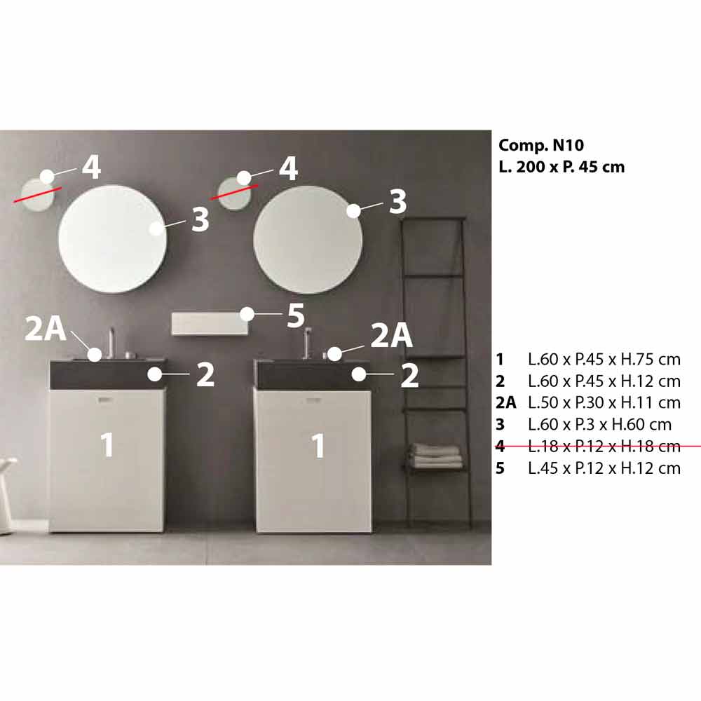 Composición de mueble de baño de diseño moderno con doble columna de lavabos made in Italy.