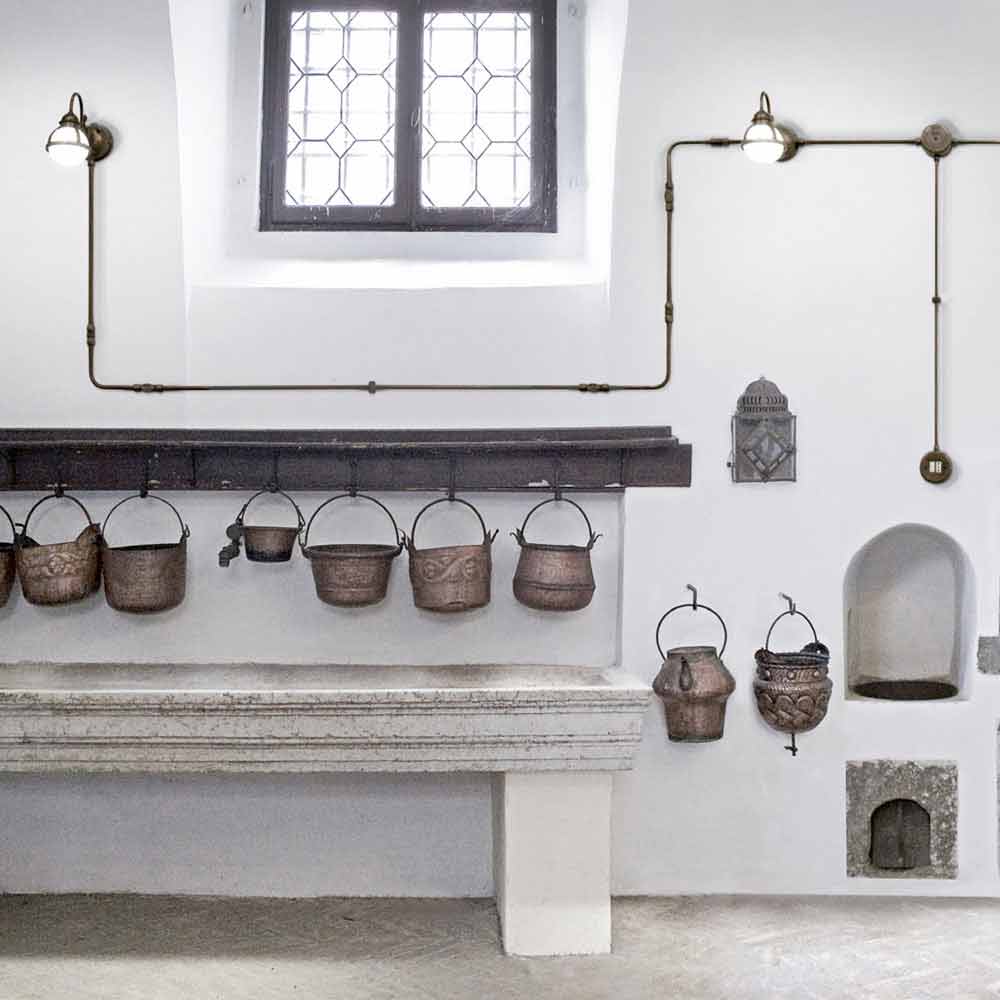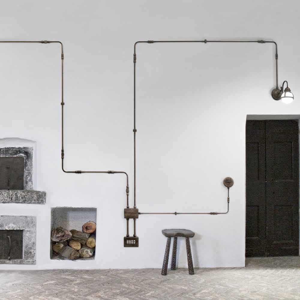 Viadurini cuenta con toda la gama de accesorios creados por Aldo Bernardi, diseñados para crear un sistema eléctrico personalizado en la superficie. Se trata de interruptores, herrajes, cajas de conexiones, conductos por los que pasar el cable eléctrico, para combinar con las lámparas y apliques de la colección Aldo Bernardi. Los sistemas modulares que se pueden realizar con estos accesorios permiten llegar a cualquier punto de la pared al que se fijen y, sobre todo, se realizan a medida, en función de las necesidades del cliente.