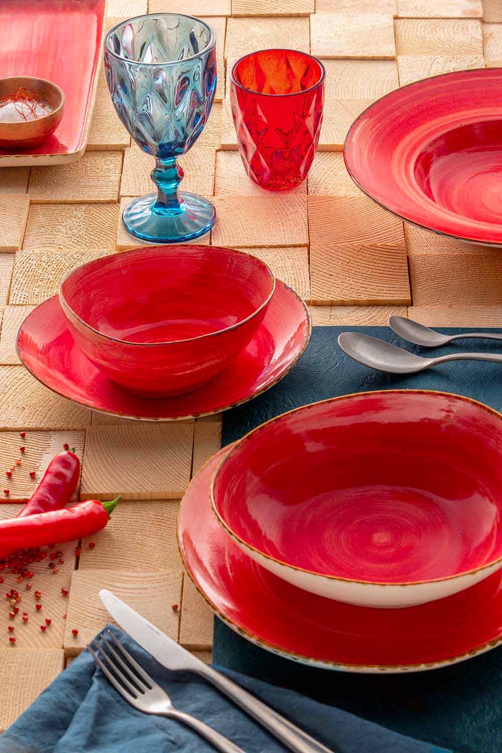 rojo picante: un color picante y fascinante capaz de realzar las líneas suaves y persuasivas de los platos. Un toque de rojo atractivo y profundo para toques individuales convincentes al servir.