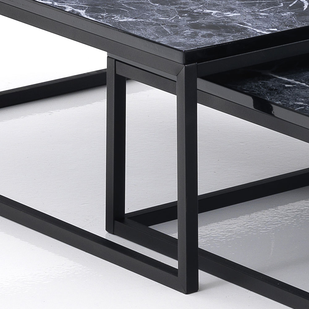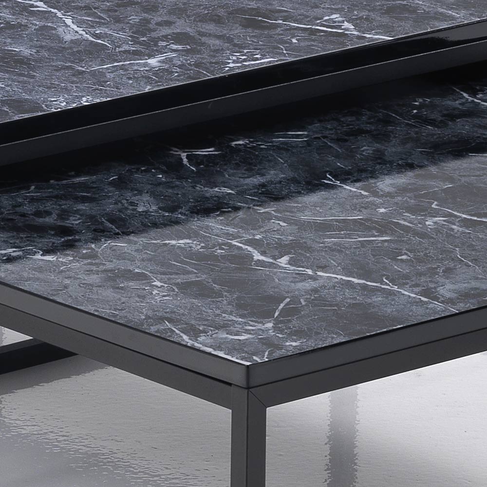 estructura negra mate, tapa con acabado de mármol negro brillante