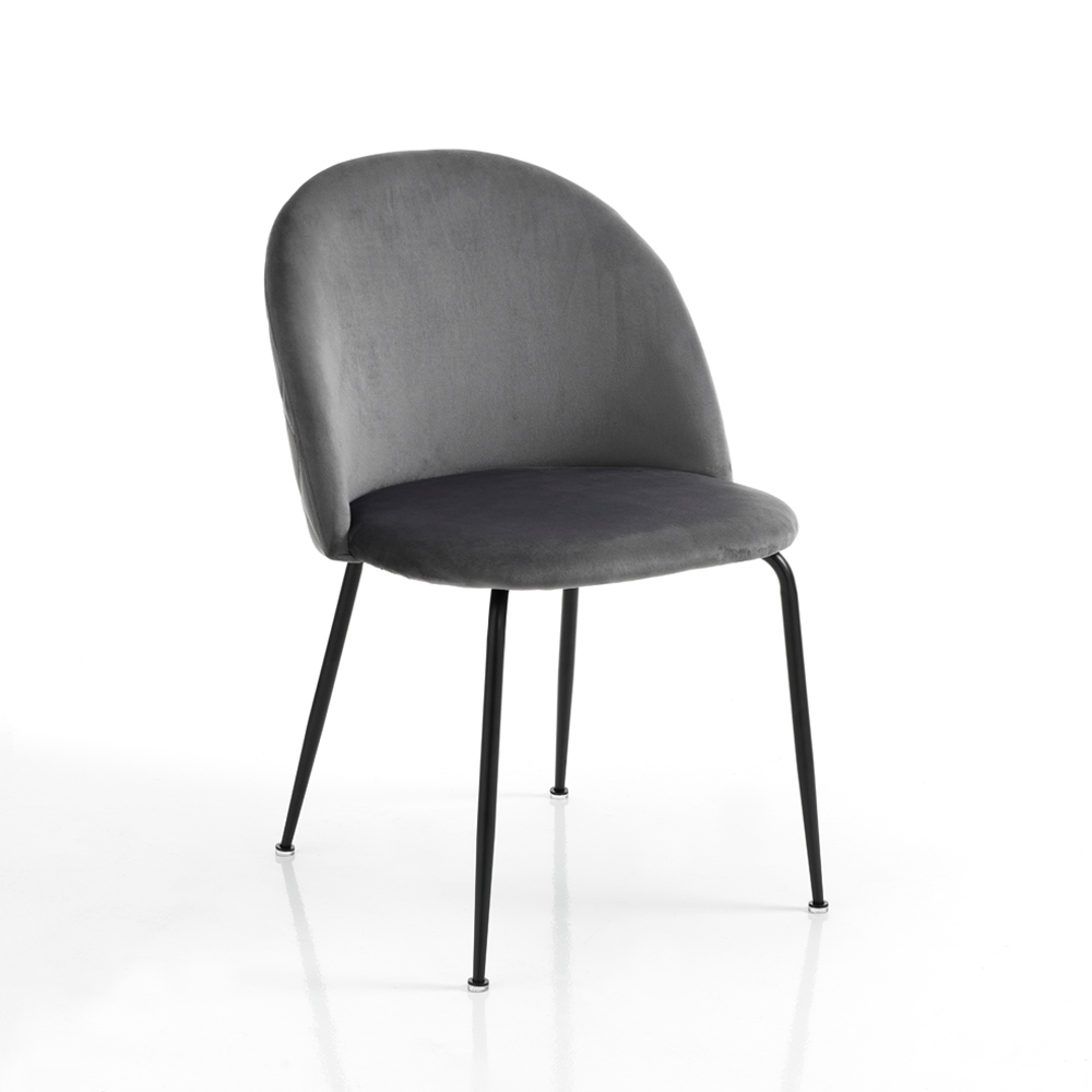 4 sillas de salón en tejido efecto terciopelo y acero.