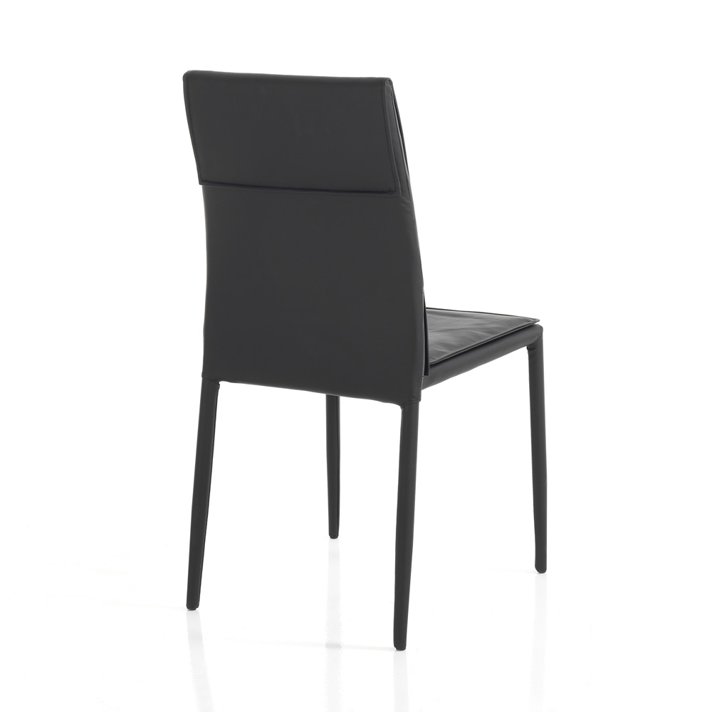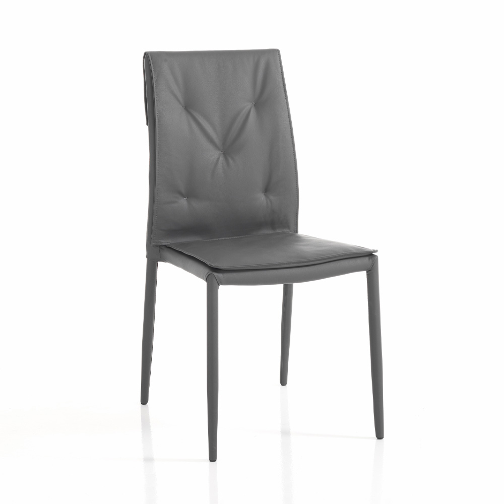 Conjunto de 4 sillas completamente tapizadas en polipiel fija , acolchado interno en gomaespuma de intensidad media y estructura interna íntegramente en acero. Estos artículos, gracias a sus acabados sencillos y elegantes, son perfectos para completar el mobiliario de cualquier salón, cocina y salón. Ofrecen un asiento cómodo y confortable y una gran estabilidad gracias a la forma de las patas. Los materiales utilizados son de excelente calidad para ofrecer al cliente un producto no sólo bonito a la vista sino también práctico y funcional.