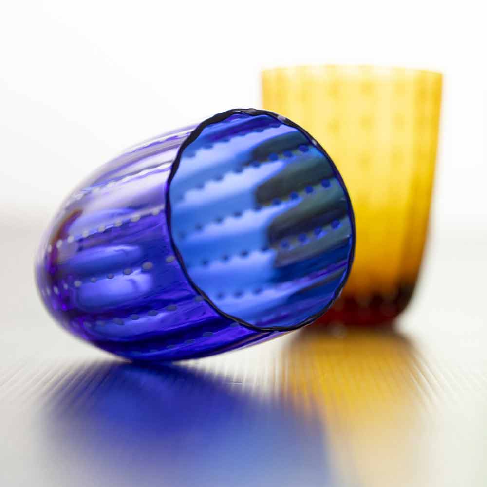 Una línea de gafas que recuerda al sur de África gracias a la resistencia del material y, sobre todo, a través de la elección de los colores que se acercan a la mesa, realzados por la transparencia que brinda el vidrio. Una cohesión de delicadeza y exotismo que resulta en una explosión de colores que puede sorprender a los comensales a través del refinamiento de los detalles y la particularidad del estilo.