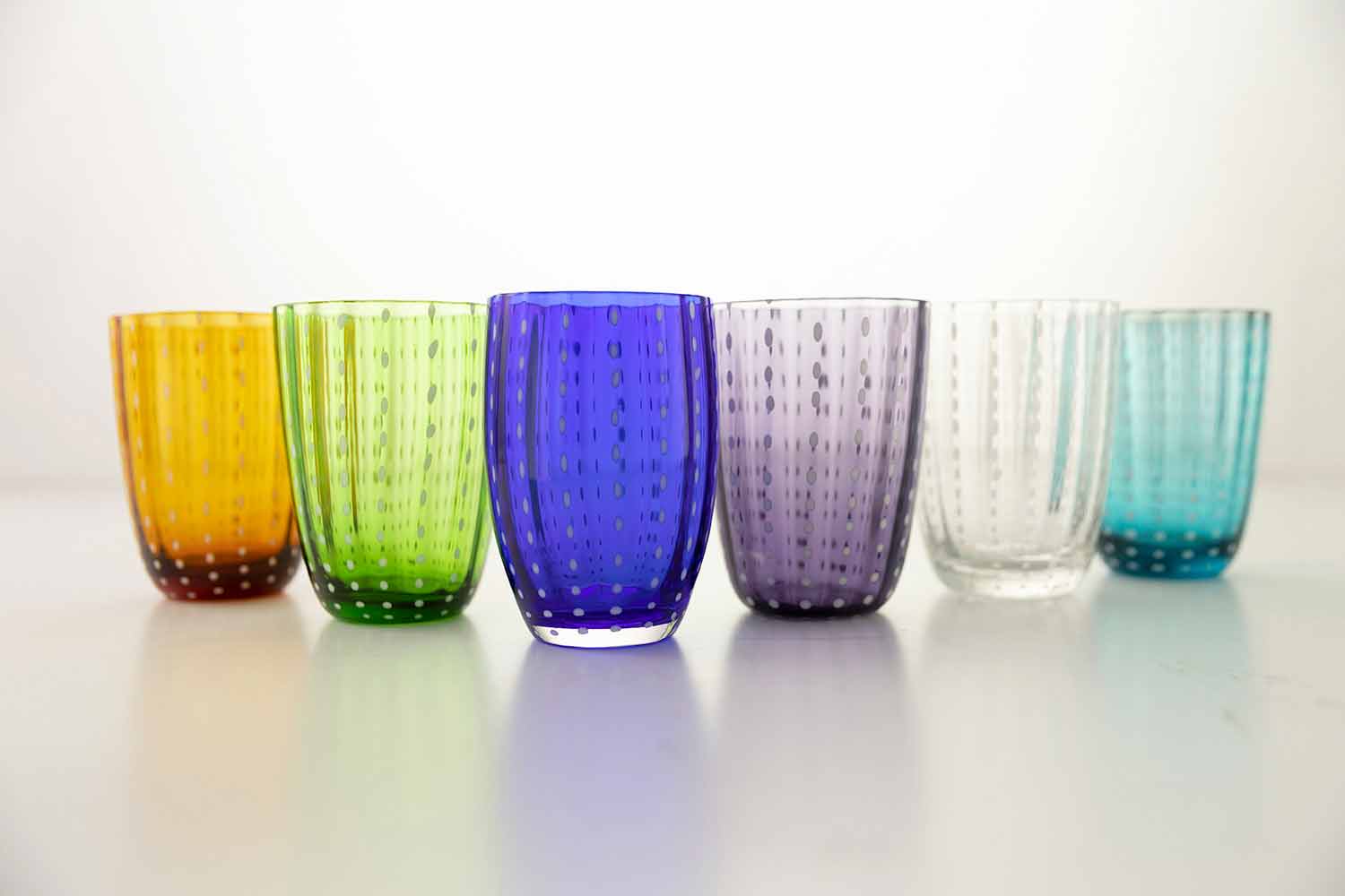 Set de 12 vasos de colores de diseño moderno para agua.