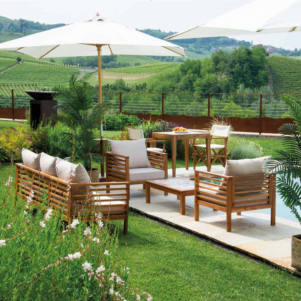Este conjunto es una versátil elección que encaja perfectamente tanto en interiores como en exteriores, soportando diversas condiciones climáticas gracias a su resistente construcción en madera tratada. Ideal para aquellos que buscan una sofisticada sala de estar sin sacrificar la funcionalidad y el confort.