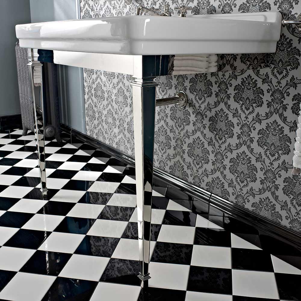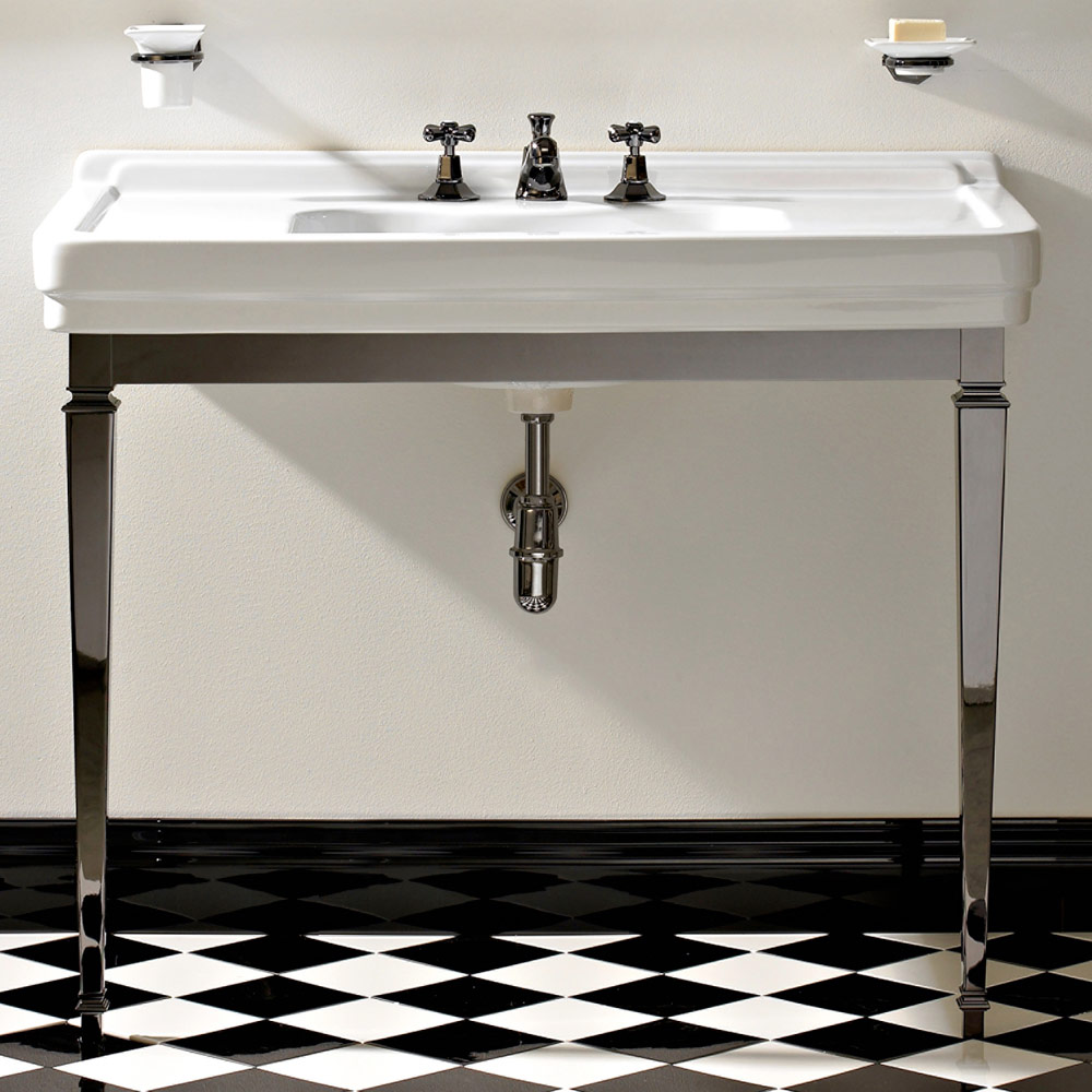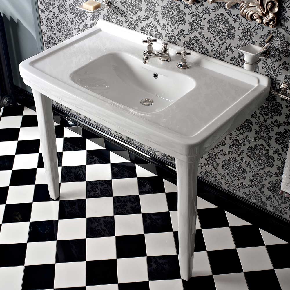 Consola de baño de cerámica blanca vintage de 105 cm con pies, Made in Italy - Marwa
