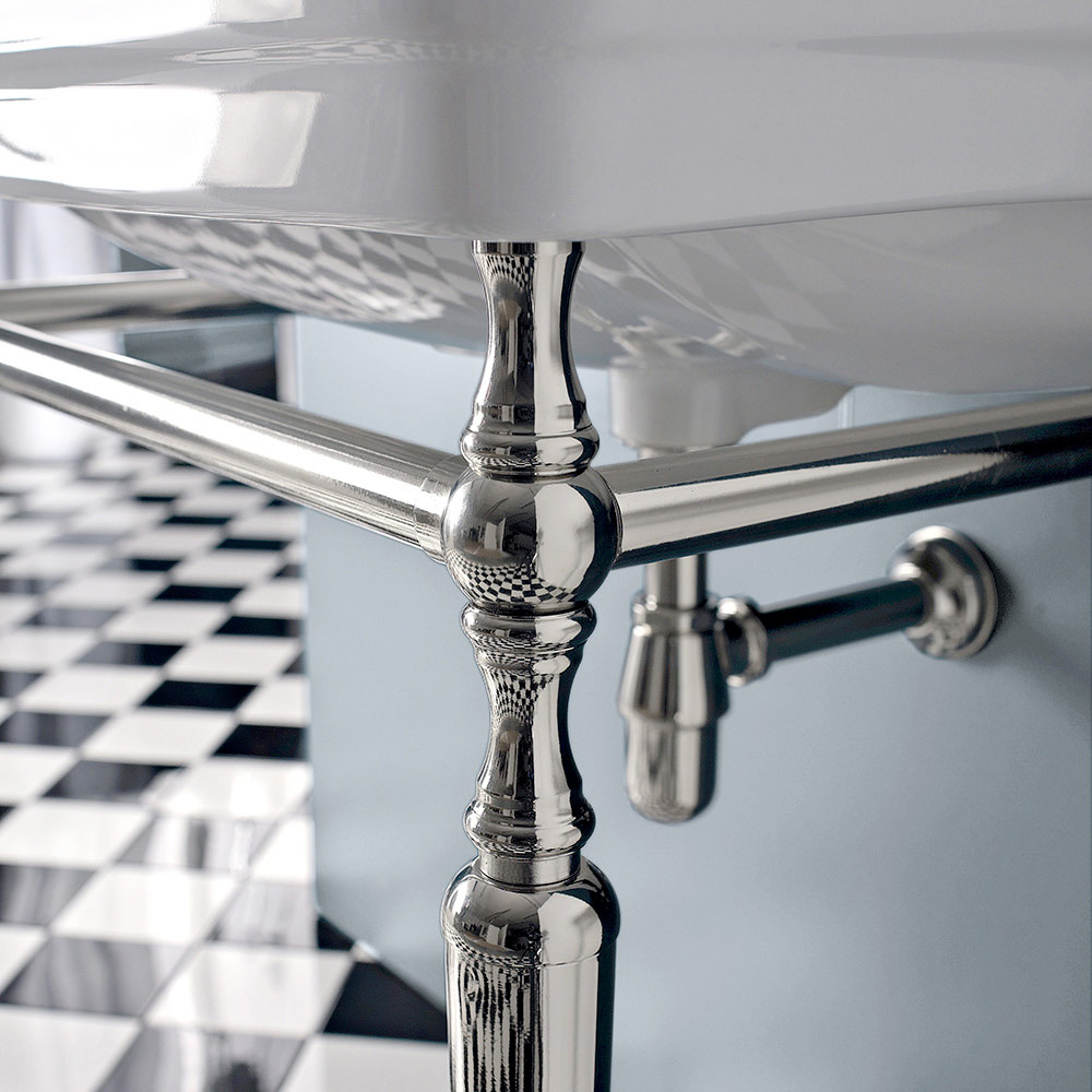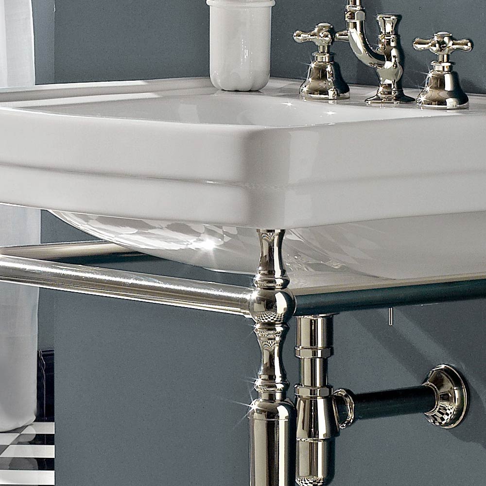 La combinación correcta de cerámica y metal hace que esta consola sea ideal para decorar cualquier estilo de baño.