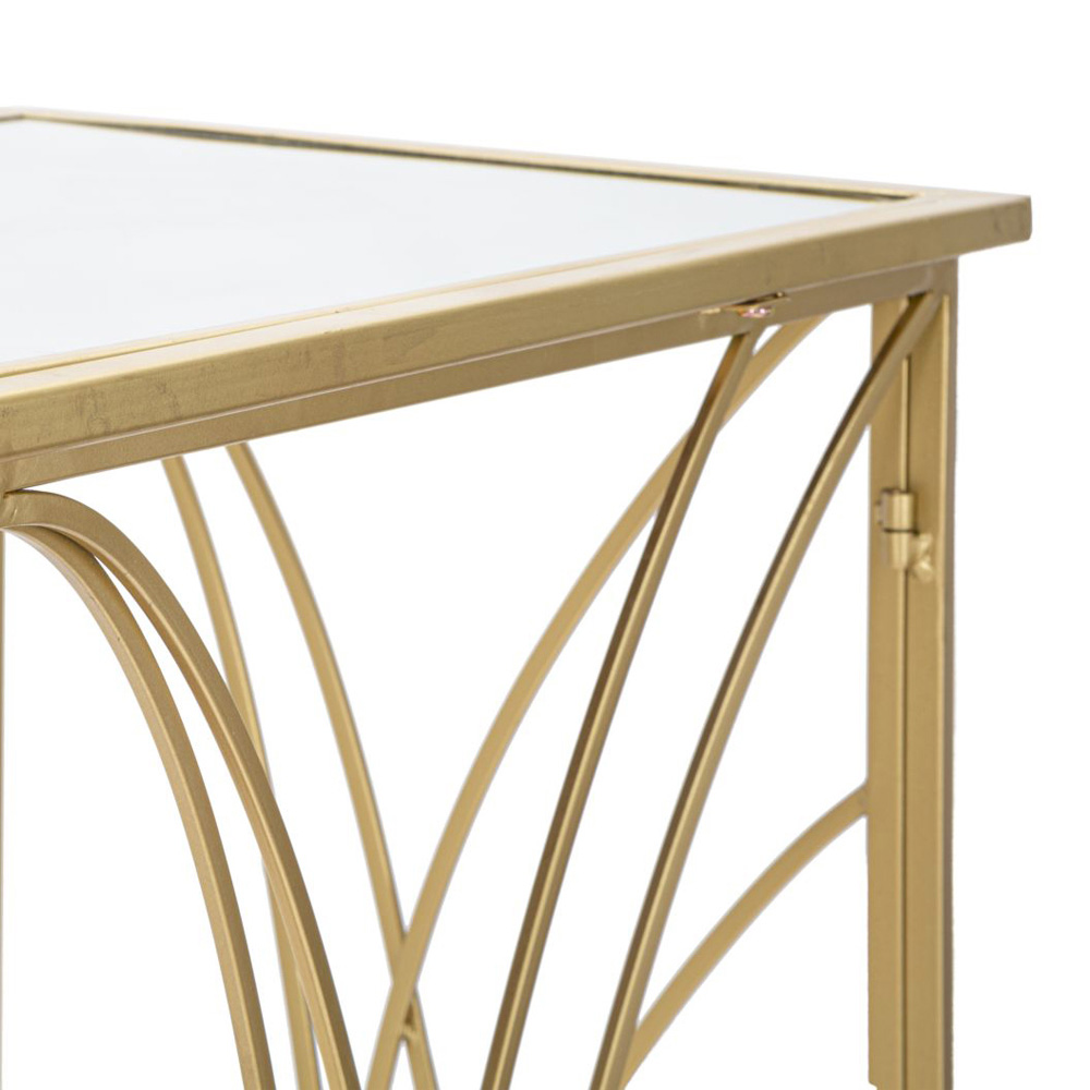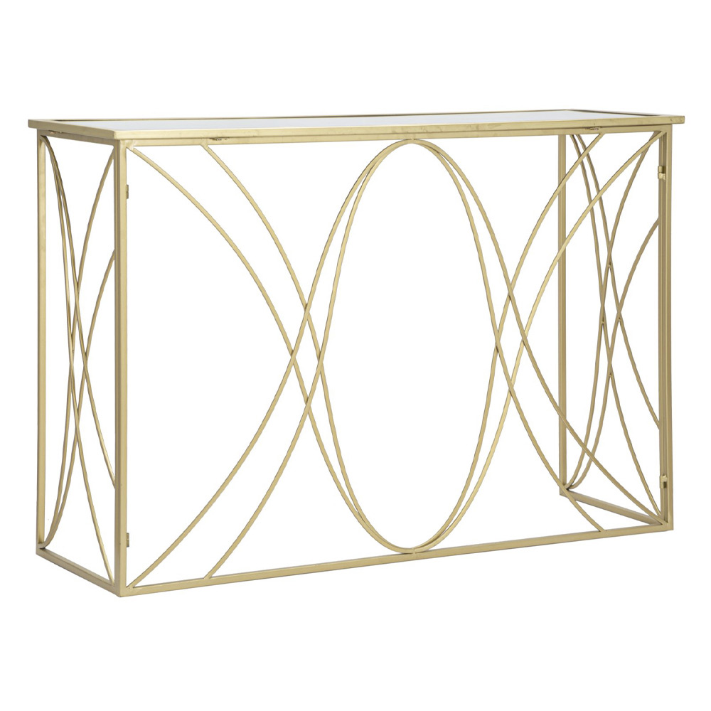 Consola moderna en hierro con acabado dorado con tapa de espejo