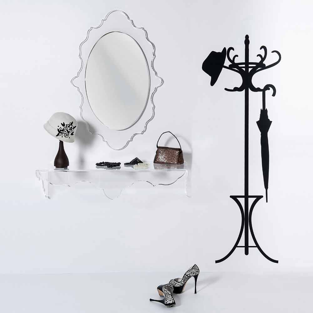 Consola de pared en plexiglás transparente Bianca, made in Italy Sapore d'art nouveau para la consola Blanco en plexiglás PMMA 100% polímero virgen completamente transparente, cortado con láser y termoformado a altas temperaturas. El anclaje de pared es compatible con 2 puntos de anclaje metálicos de tecnodesign. El plexiglás es a prueba de golpes, indeformable, inalterable y aislante del calor. El brillo y el brillo se mantienen constantes y sin cambios a lo largo del tiempo. El plexiglás de PMMA de polímero virgen utilizado por es no tóxico, hipoalergénico, inodoro y antibacteriano. 100% reciclable Diseñado, diseñado y fabricado en Italia con materiales italianos.