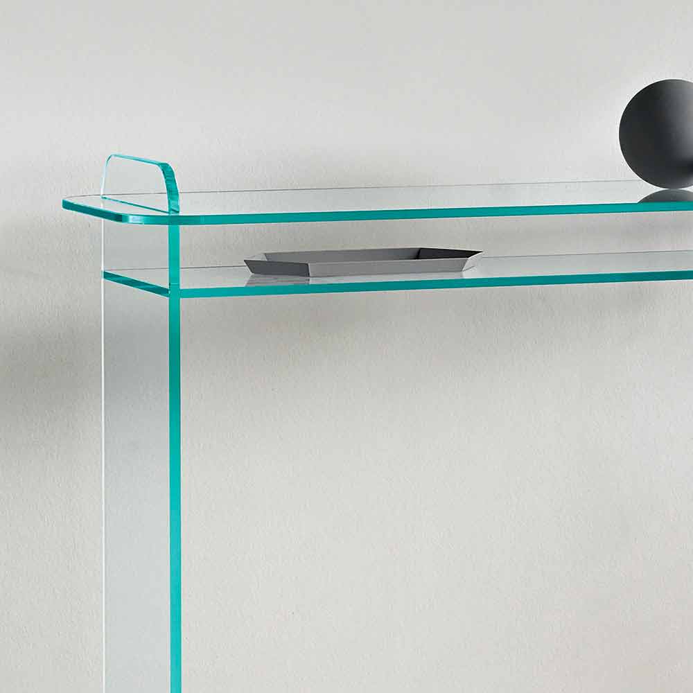 Realizado íntegramente en vidrio extraclaro de 12 mm de espesor , gracias a sus formas prácticas y minimalistas es ideal para dar estilo y funcionalidad al entorno.