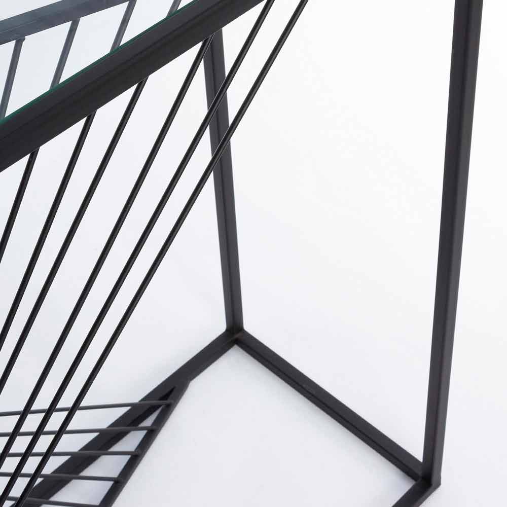 Esta consola de diseño tiene una estructura rectangular mínima en acero con recubrimiento de polvo epoxi y una tapa de vidrio templado . La peculiaridad consiste en el original juego de formas que se extiende desde la base hasta la parte superior, creando un efecto visualdinámico y creativo. El resultado es una obra de arte , con un marcado carácter ornamental, capaz de adornar el entorno con estilo y gusto contemporáneo.