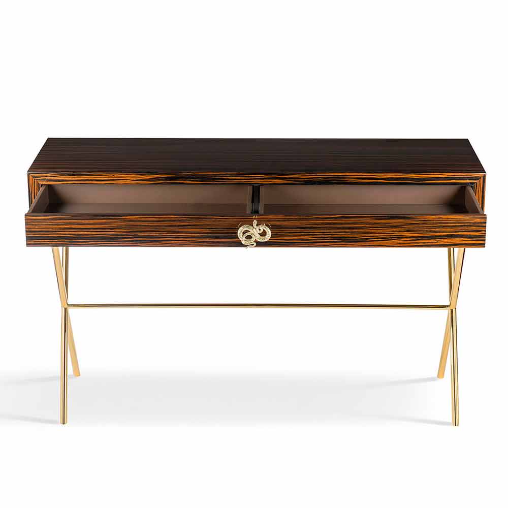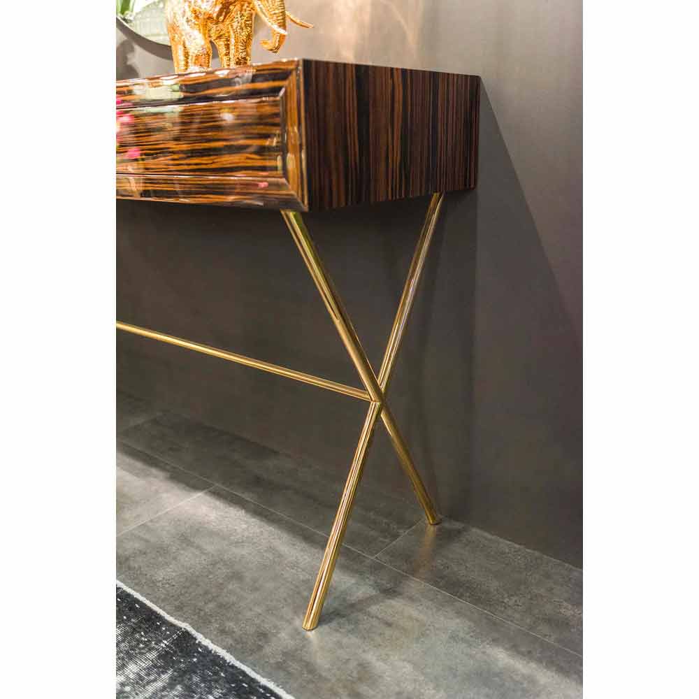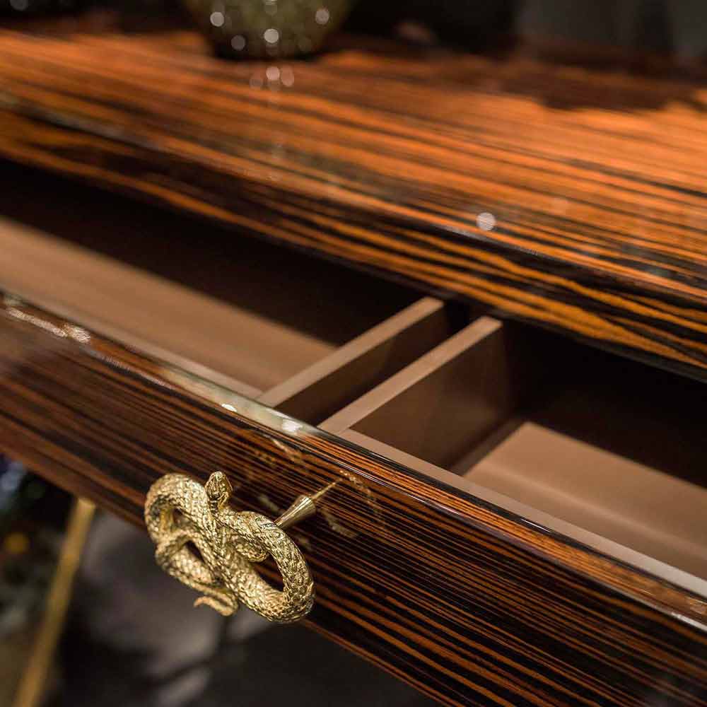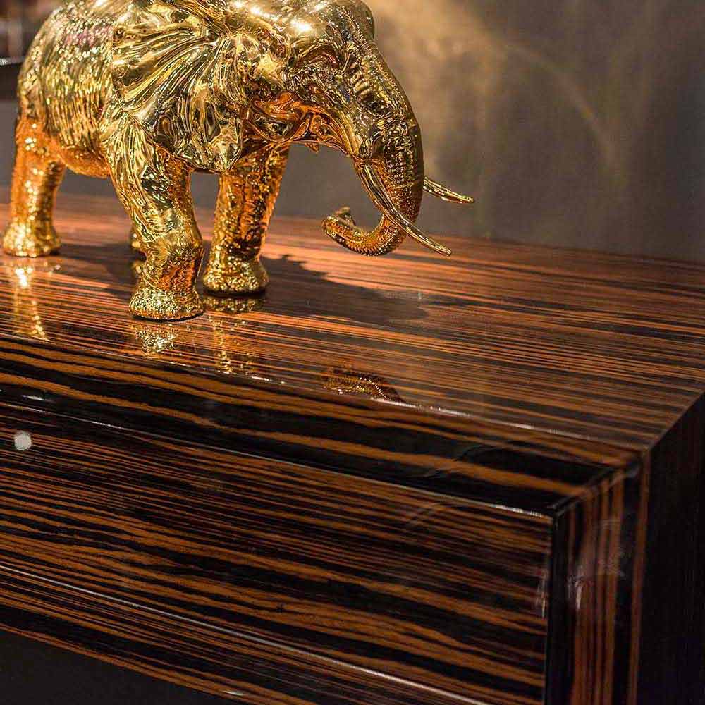 Consola en madera de ébano pulido con 4 cajones Ada Consola con cajones con un diseño refinado y exclusivo para los muebles modernos y contemporáneos, pertenecientes a la colección pecado original creado por el diseñador Giorgio chicos. Hecho de madera de ébano real de pulido o blanco de la perla, la salida 45 °, dos cajones deslizantes dentro de Salice guías con movimiento lento. Frontal con mango de latón fundido. Base galvanizado pulido 24 kt de metal chapado en oro. La consola Ada 4 también está disponible en blanco perla versión: pedir una clienti@viadurini.it estimación.