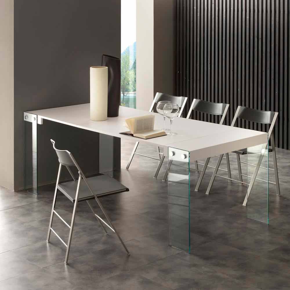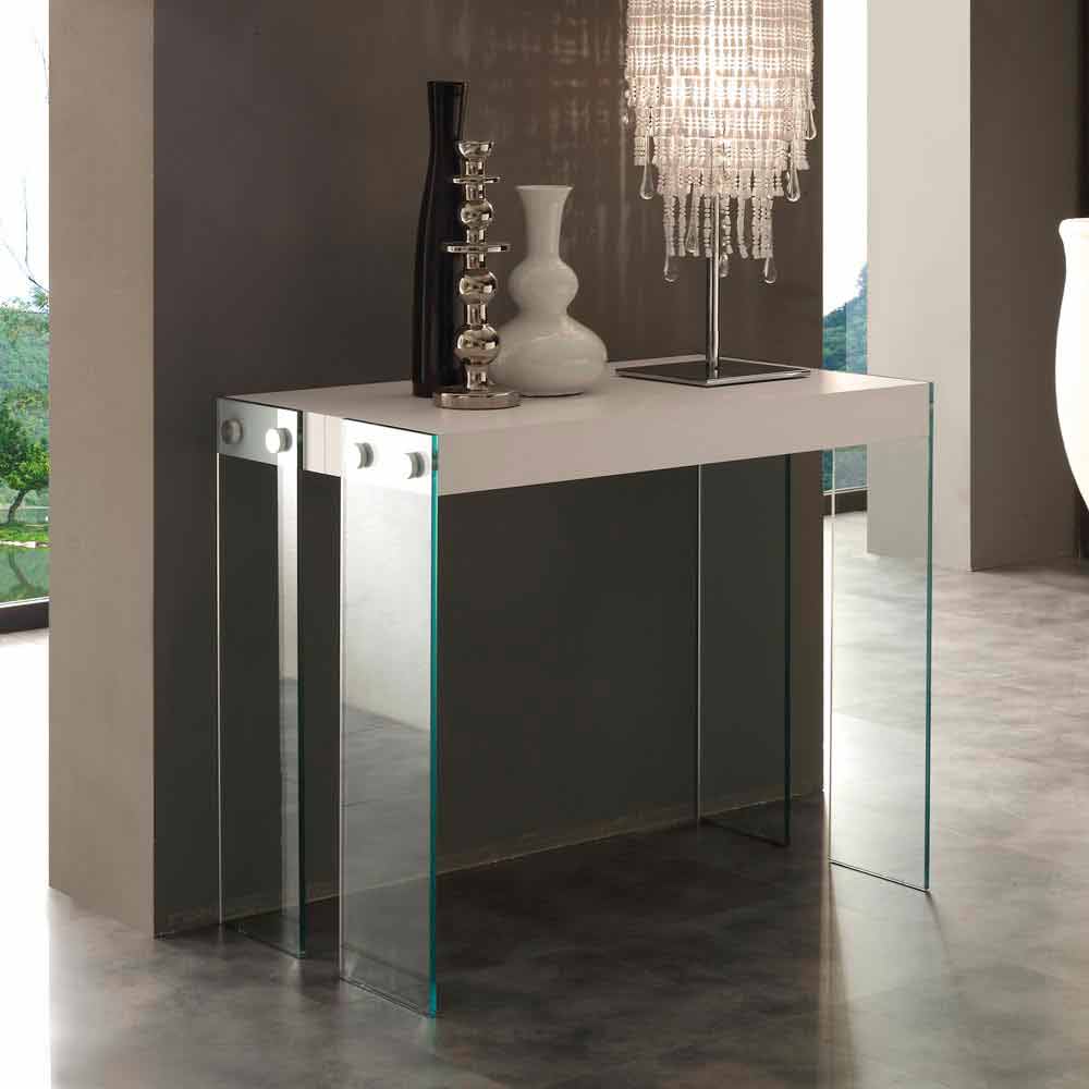 Consola extensible de diseño con patas de vidrio templado modelo Miss
