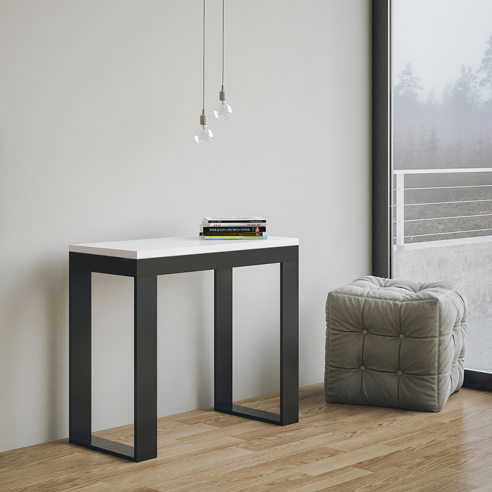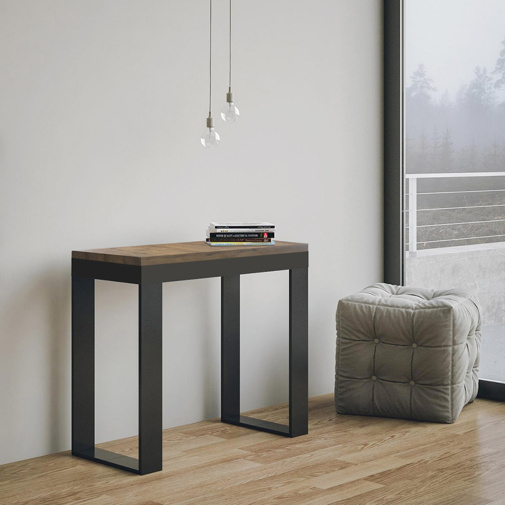 Su estructura es robusta y bien construida, lo que garantiza que resista el uso diario y que sus extensiones puedan maniobrarse con facilidad. A pesar de su diseño aparentemente sencillo, esta mesa consola se transforma en una pieza central en cualquier habitación, perfecta para añadir un toque de sofisticación moderna.