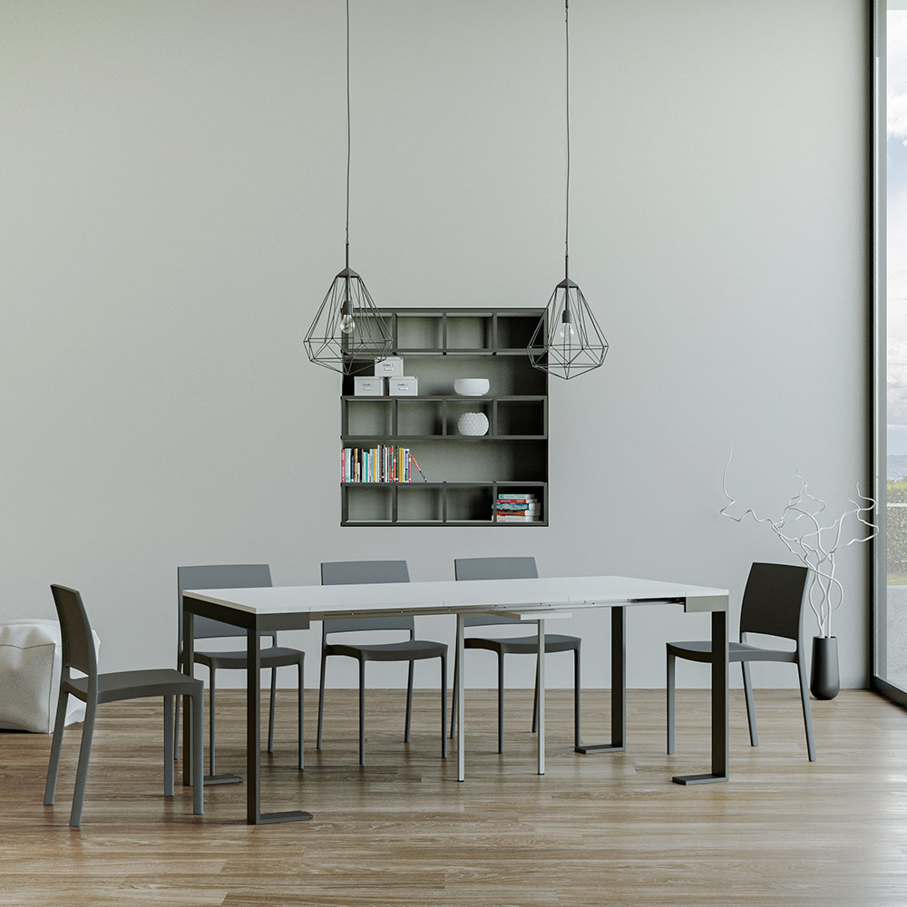 La principal característica de esta mesa consola es su capacidad de extenderse, lo que te permite transformarla de un mueble esbelto y discreto a una mesa más espaciosa y acogedora. Esto la hace ideal para espacios pequeños o multifuncionales, donde cada centímetro es precioso.