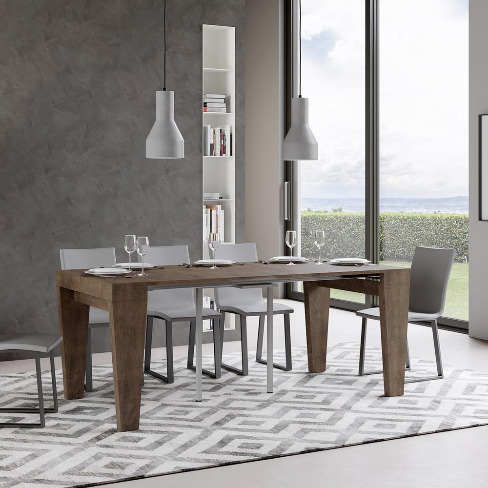 Descubre la esencia del diseño moderno con esta mesa consola extensible, una creación que encarna elegancia y funcionalidad en un solo mueble. La parte superior y las patas recuerdan la arquitectura urbana y las tendencias industriales, perfectas para un entorno contemporáneo que quiera expresar fuerza y carácter.