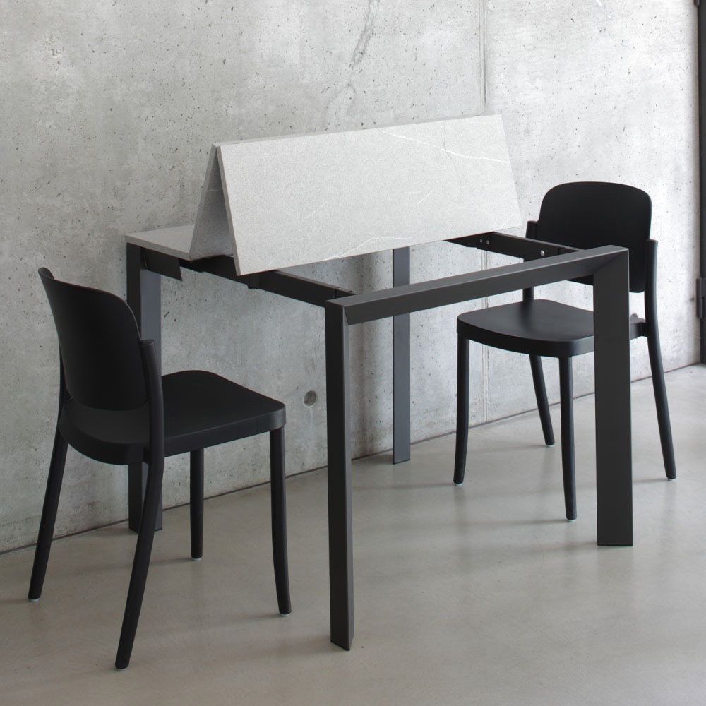 La verdadera magia se revela en su potencial de transformación: se expande fácilmente hasta convertirse en una mesa de generosas dimensiones , lista para albergar cenas, sesiones de trabajo o momentos de convivencia con amigos y familiares. Es ideal para quienes buscan soluciones que ahorren espacio sin renunciar a la funcionalidad de una mesa grande.