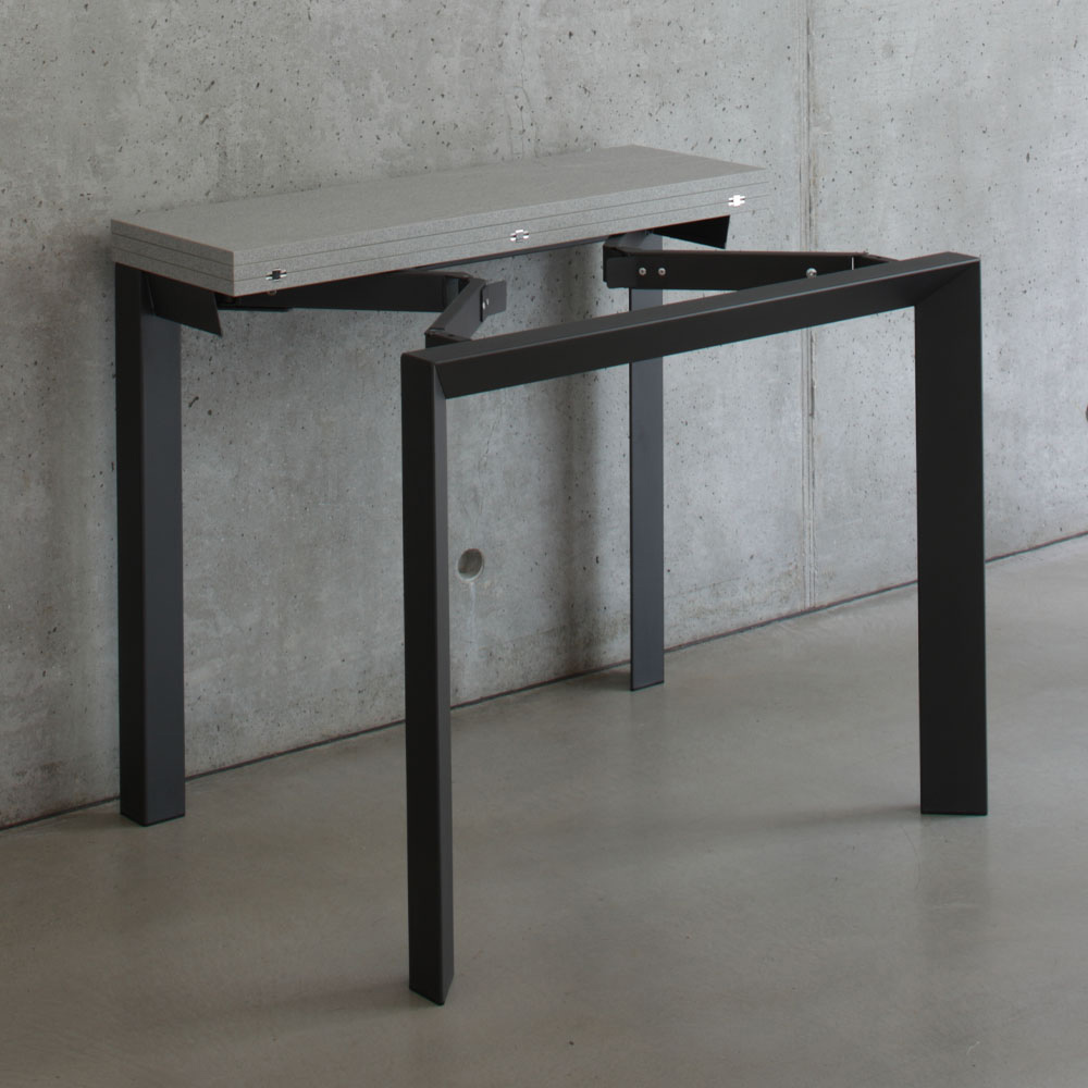 La estructura sólida y el mecanismo intuitivo garantizan una transición suave y sin esfuerzo de la consola a la mesa, demostrando que el estilo y la practicidad pueden ir de la mano. Tendrás la seguridad de tener una pieza de diseño que adapta su forma a tus necesidades, haciendo que cada espacio sea funcional y chic al mismo tiempo. Es más que una simple consola, es un símbolo de adaptabilidad y gusto contemporáneo, imprescindible para quien quiera amueblar su hogar con inteligencia y clase.
