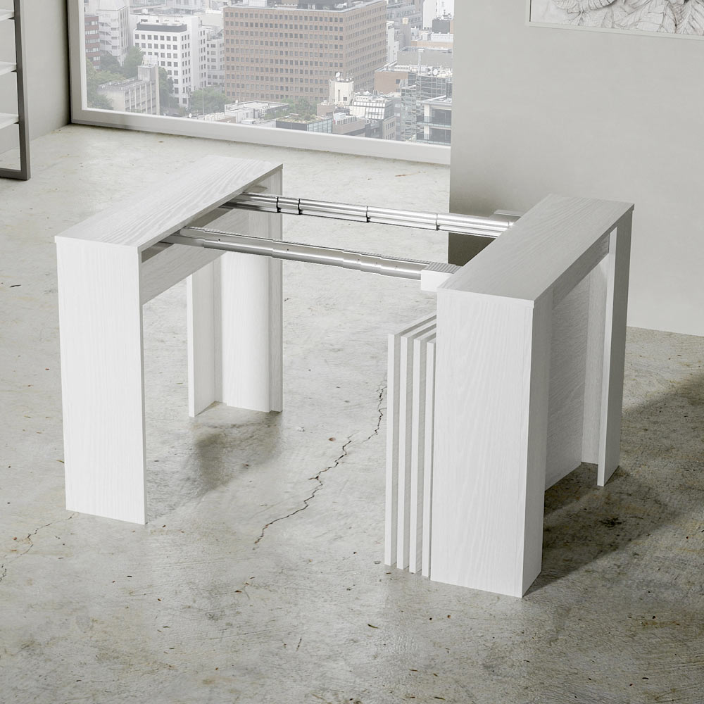 Déjate encantar por la pureza y la funcionalidad de esta consola extensible, un mueble que representa la quintaesencia de la versatilidad moderna.