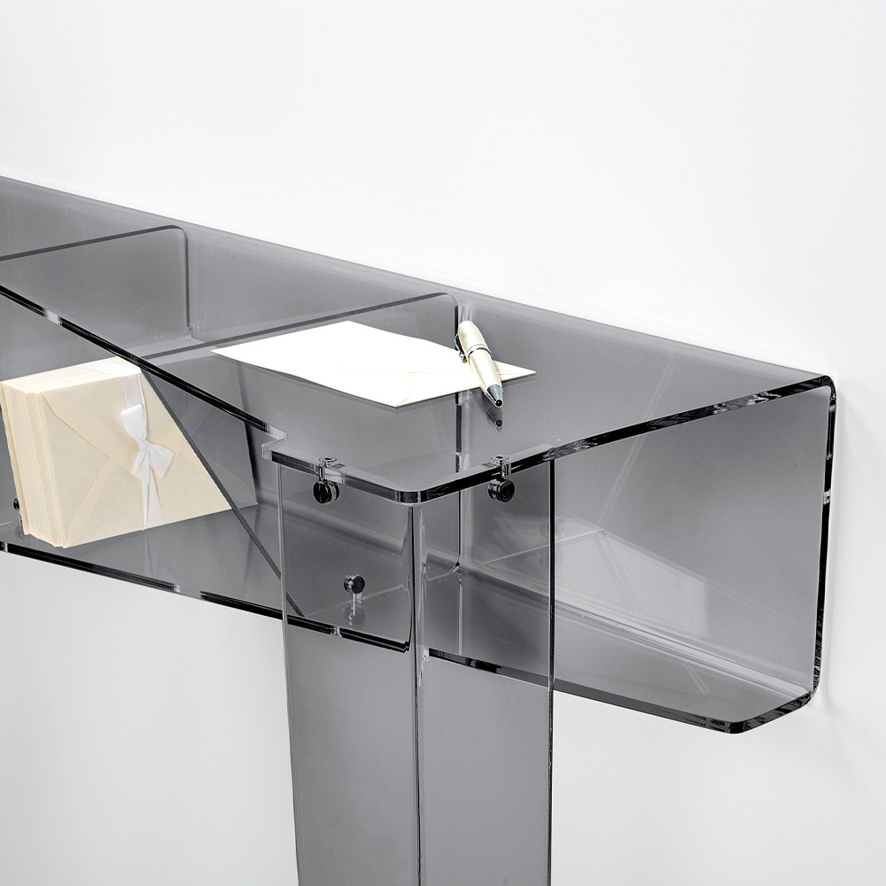 Fabricada con PMMA 100% de alta calidad a partir de polímero virgen , la consola promete no solo resistencia y durabilidad , sino también un brillo y brillo que no se desvanece con el tiempo. Como una verdadera obra de arte, esta consola capta y refleja la luz, creando una atmósfera viva y dinámica en cualquier espacio.