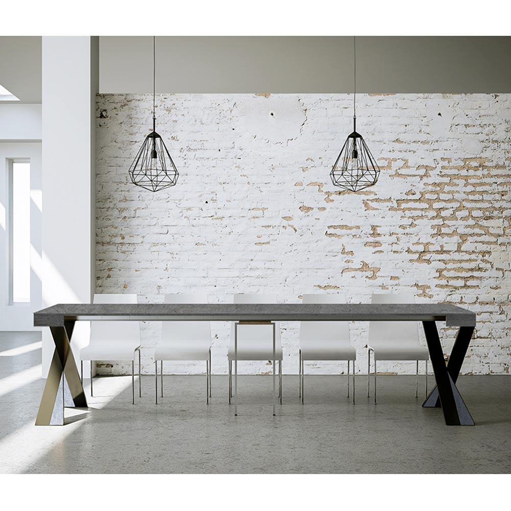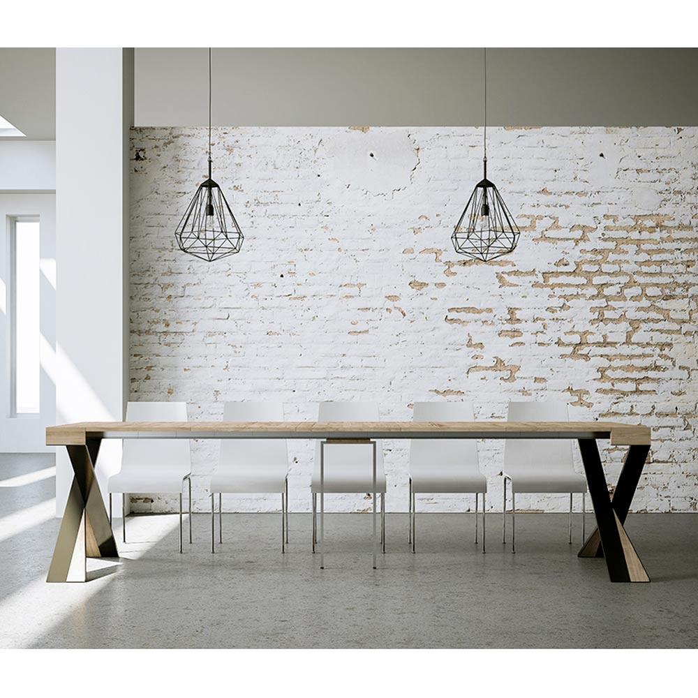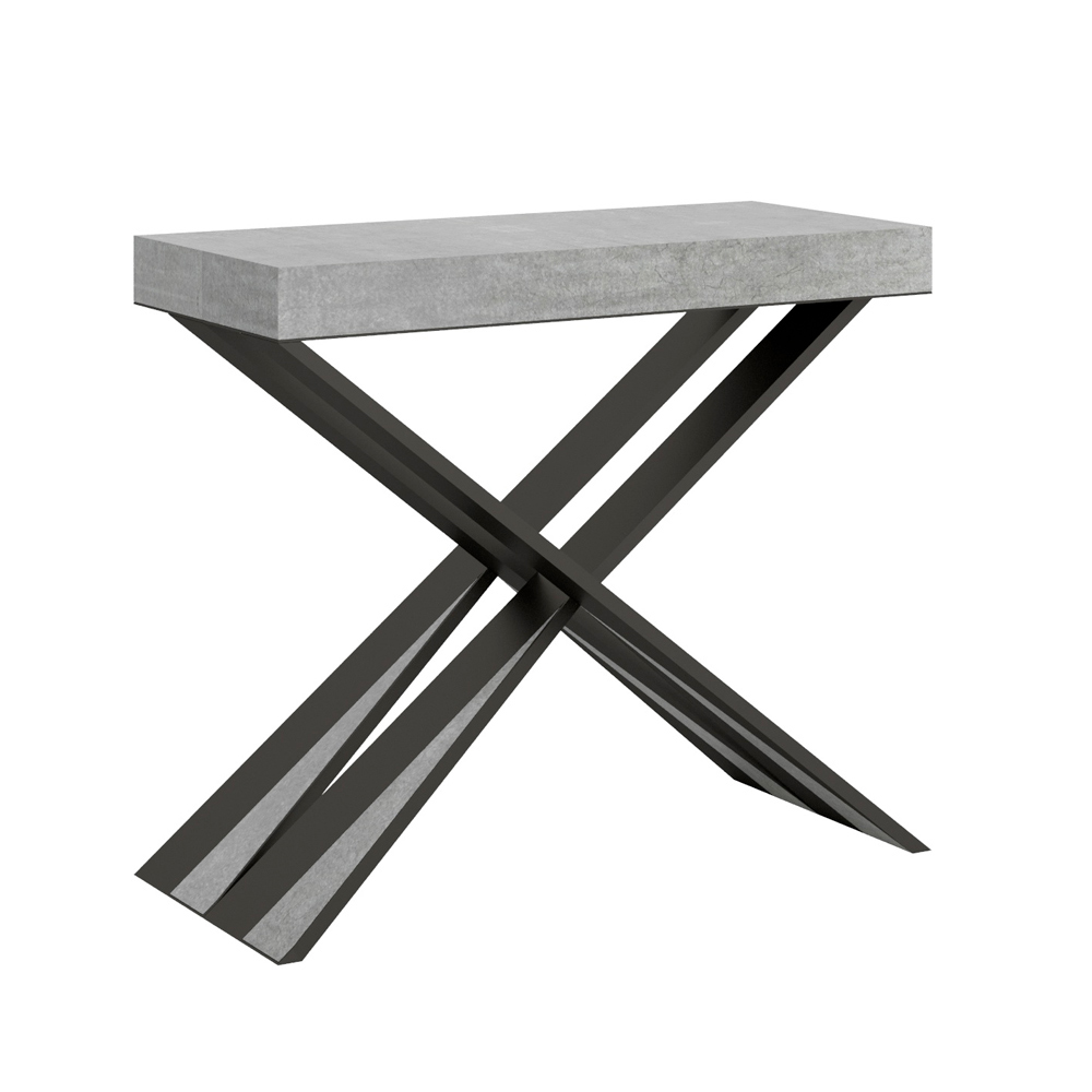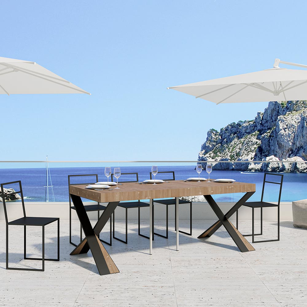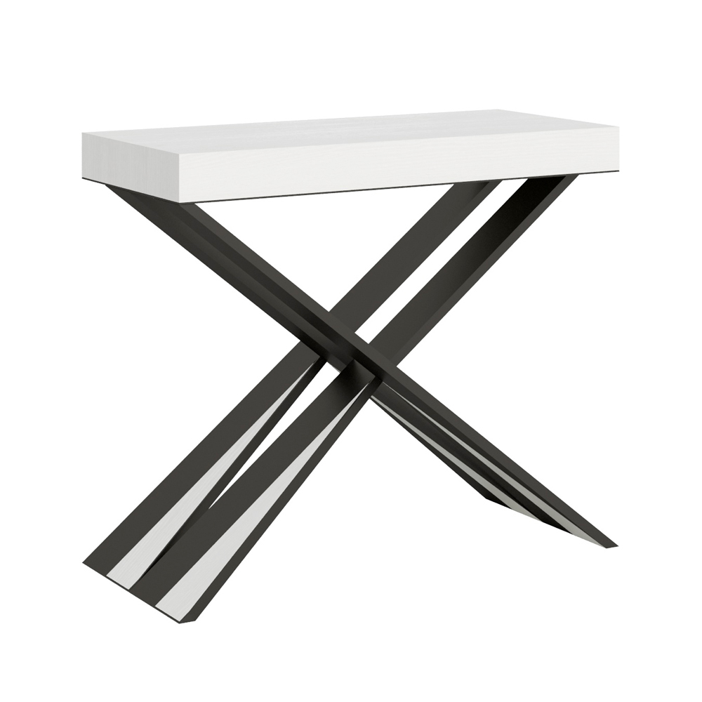 Esta mesa consola extensible encarna la elegancia y la funcionalidad en un diseño llamativo. É presenta una silueta moderna con una base en X que no sólo proporciona un soporte sólido sino que también añade un toque de sofisticada originalidad. La encimera de madera molduradaè un homenaje a la calidad del Made in Italy, apreciado por su durabilidad y capacidad para resistir el paso del tiempo.