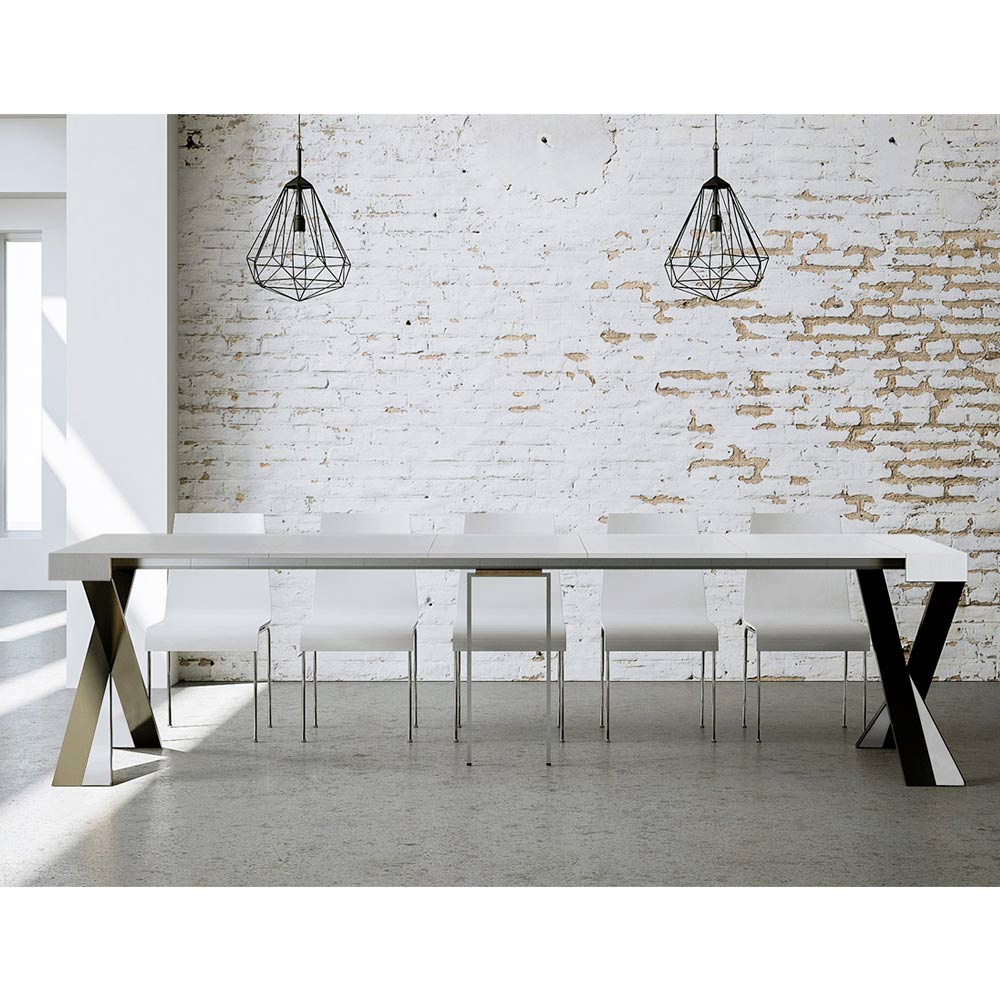La característica extensible de esta mesa consola la hace perfecta para quienes aman ser anfitriones: puedeò transformarse rápidamente de un elemento discreto en una gran mesa capaz de acoger a amigos y familiares. È un producto pensado tanto para el profesional del mueble, que sabe apreciar tanto la estética como la practicidad, como para el propietario que desea una pieza de diseño funcional e impactante. La mesa consola es un ejemplo de cómo se puede personalizar el espacio para adaptarlo a su estilo de vida, ya se trate de optimizar el espacio para una velada íntima o una gran reunión.