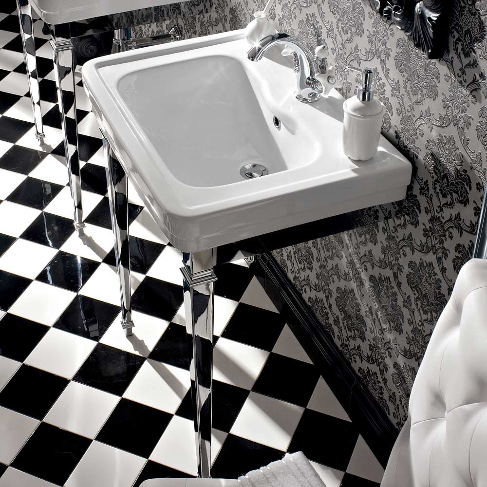 Consola de baño de cerámica Made in Italy con patas de metal, estilo vintage, Marwa.