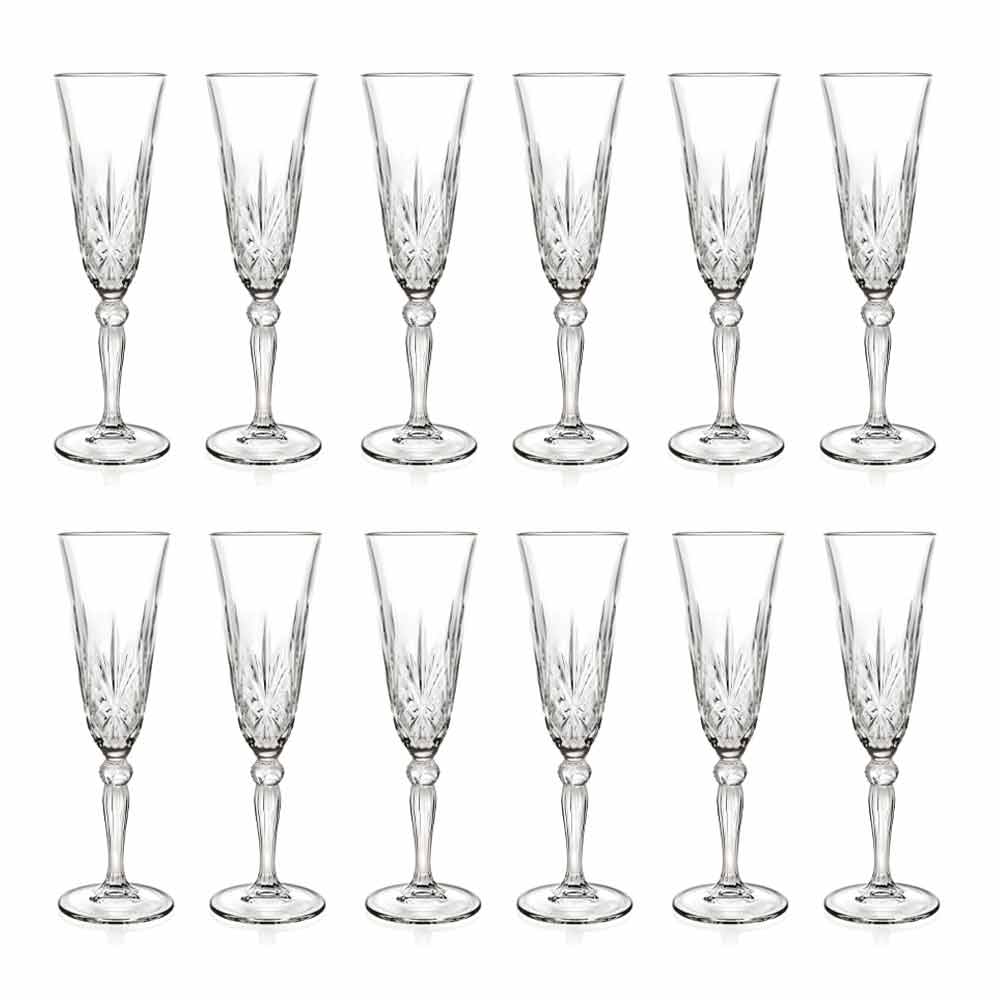 12 copas de flauta en cristal ecológico diseño de estilo vintage de alta calidad 100% made in Italy.