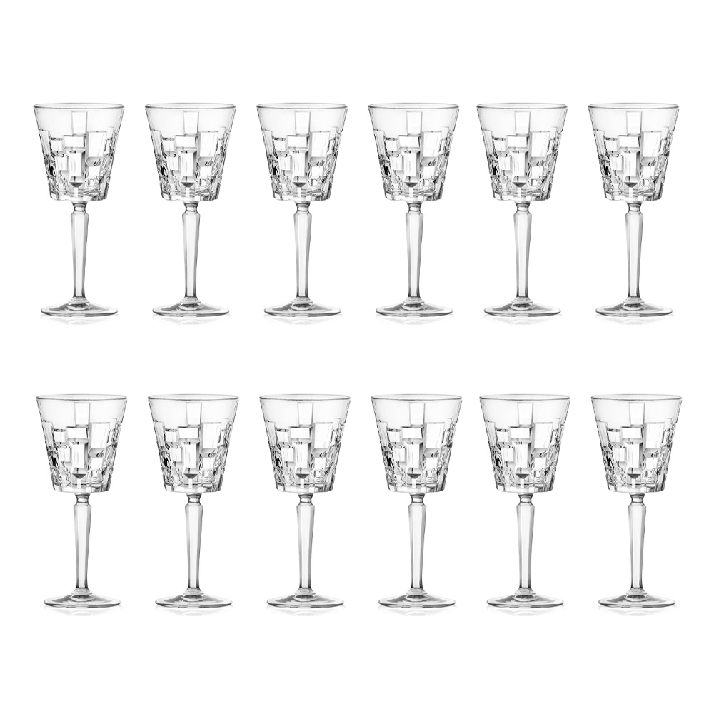 Juego de copa de vino o agua de cristal ecológico con decoración de talla de 12 piezas fabricada en Italia.