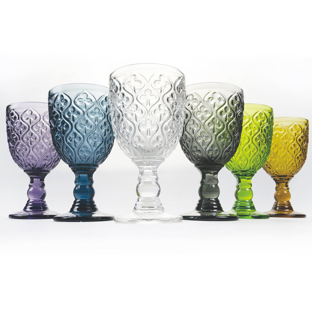 Para aquellos que quieran crear un ambiente picante en la mesa puesta, este juego de copas de vino es ideal. Arabescos delicados están grabados en la superficie que es única y preciosa.