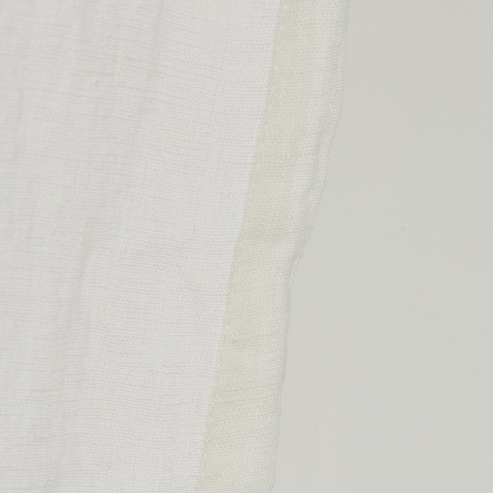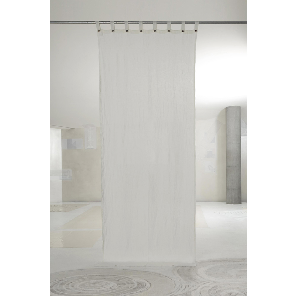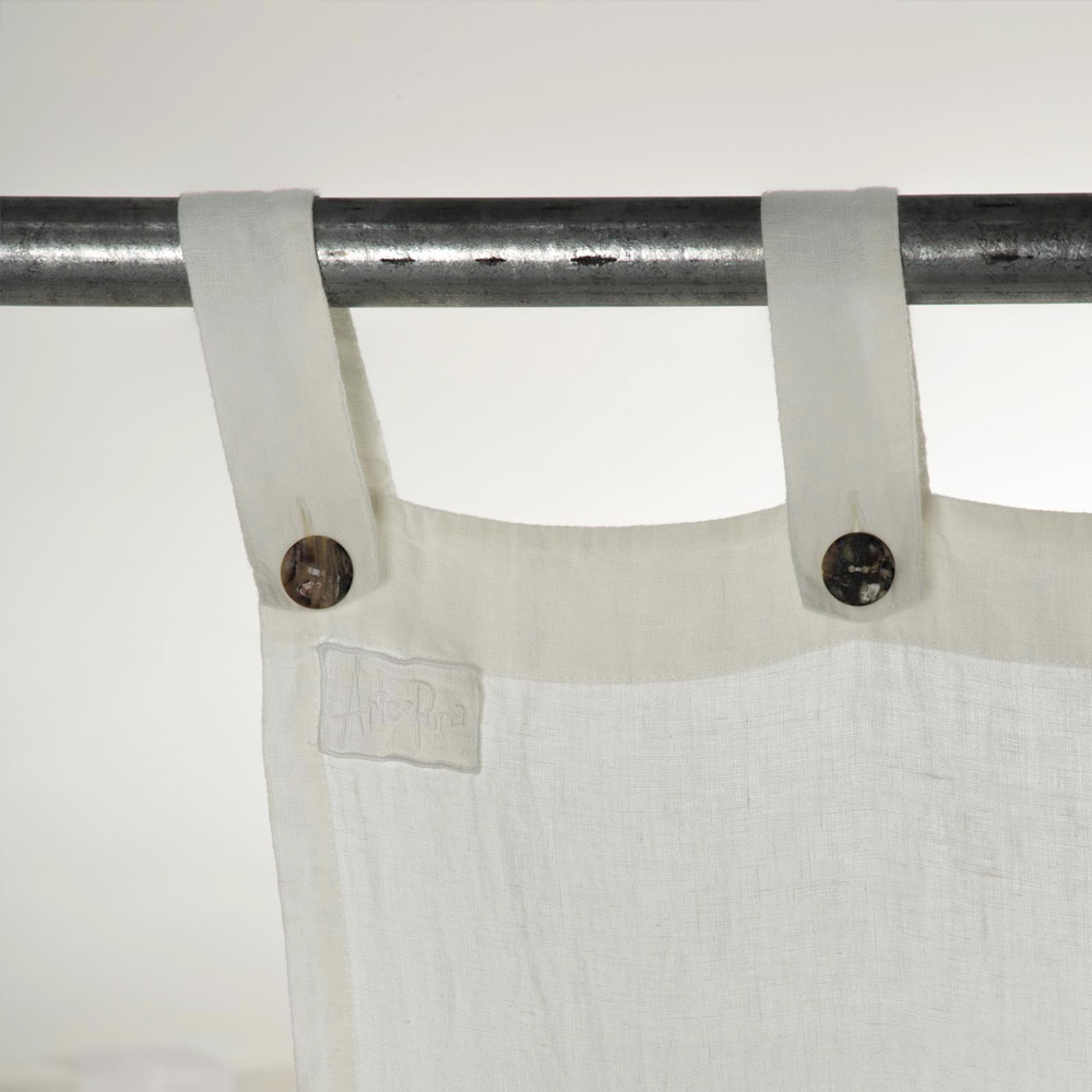 Cortina de lino grueso blanco con cierre de botón de nácar, calidad artesanal made in Italy.