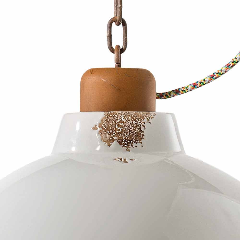 Clara lámpara colgante artesanal de diseño industrial Clara es una fantástica suspensión, con forma de campana y estilo vintage-industrial, hecha a mano por expertos artesanos en Italia. Esta preciosa lámpara consta de una estructura de hierro con un difusor realizado en cerámica brillo, disponible en diferentes colores. La peculiaridad de esta lámpara radica en la elaboración artesanal del difusor cerámico. La cerámica, de hecho, está decorada como si el tiempo hubiera marcado su camino. La reproducción de la erosión del tiempo combinada con las superficies brillantes le dan ese valor extra a esta suspensión. Este efecto desgastado le da a Clara un estilo vintage-industrial sofisticado. La estructura de metal amplifica aún más el efecto antiguo. Colores vivos, superficies brillantes y refinados signos de la edad para un perfil actual disfrazado de estilo pasado. Esta hermosa suspensión está inspirada en los puntos de luz que se utilizan para iluminar las bodegas de los barcos mercantes. Como la mayoría de los objetos náuticos que naturalmente se desgastan, esta lámpara también muestra los signos del tiempo. Ideal para decorar una casa de campo de estilo inglés. Esta suspensión creada para ambientes con un ambiente envolvente es capaz de satisfacer las solicitudes más exigentes gracias a un diseño único y original. Un diseño que se opone al lujo pero que convive armónicamente con él. Diseño que preserva la esencialidad del uso y tranquiliza con un delicado equilibrio entre formas y tonos. Clara da vida a una luz pura sin blindaje. Son estas formas sencillas y delicadas las que llaman la atención, y que hacen que Clara sea capaz de adaptarse a cualquier decoración, desde la más sencilla y minimalista hasta la más clásica, creando un delicado contraste. ¡Dale un toque de diseño también a tu hogar! ¡Pequeños detalles para un gran efecto con sabor antiguo! Lámpara disponible en diferentes acabados. ¡Consulta la carta de colores e introduce el código del acabado que deseas en la casilla correspondiente!