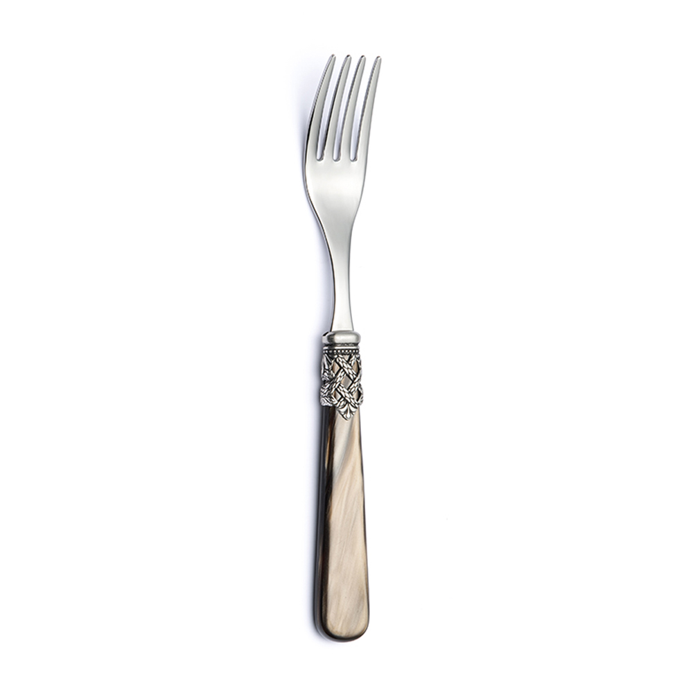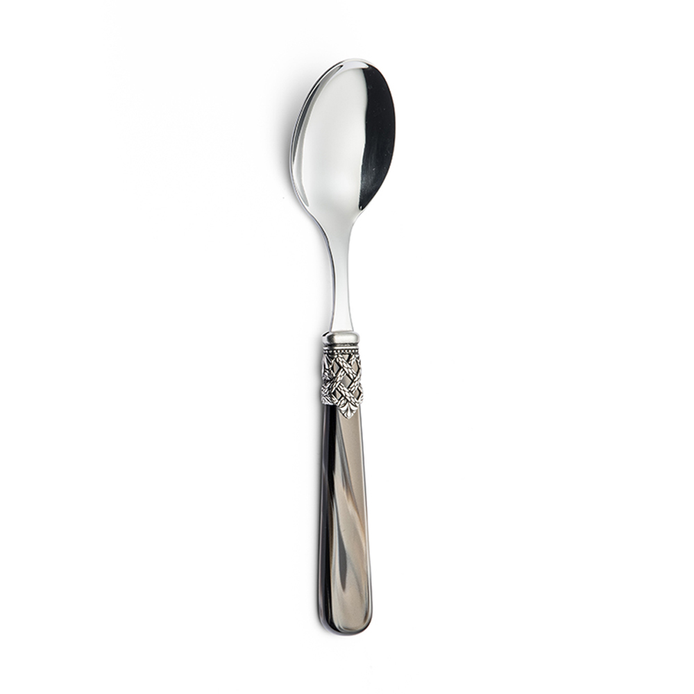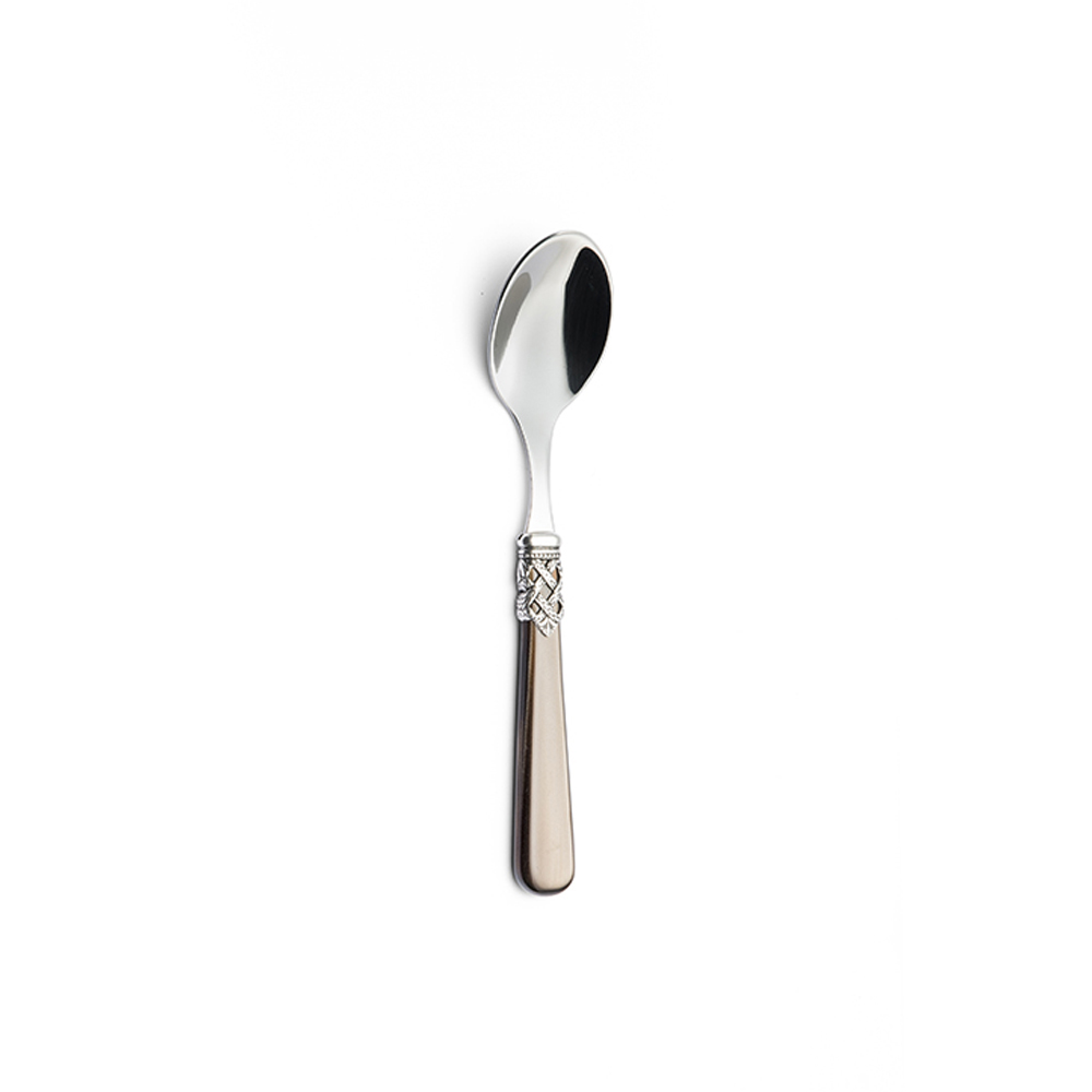 Juego de cubiertos en acero inoxidable y mango de plástico perla marfil, 24 piezas fabricado en Italia.