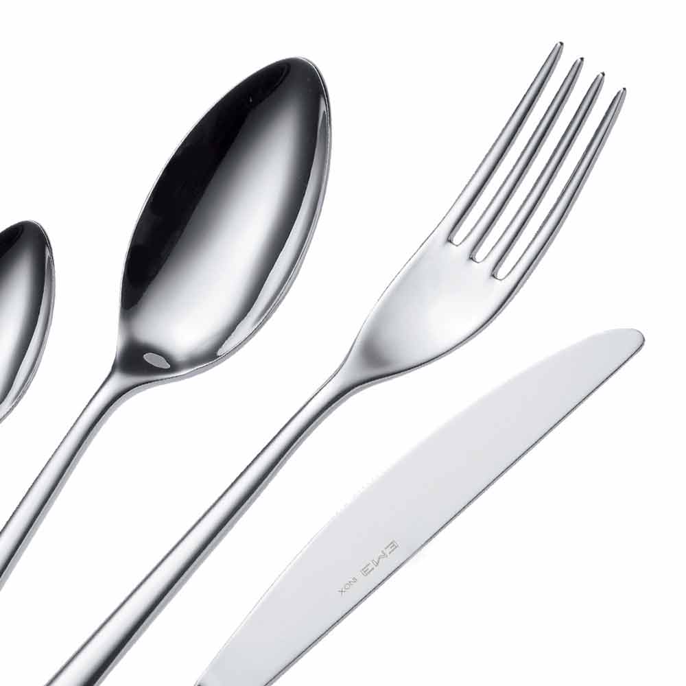 Es una colección de cubiertos de acero inoxidable 18/10, es decir, con 18% de cromo y 10% de níquel, que garantizan una excelente resistencia a la corrosión y facilidad de limpieza con un excelente coeficiente higiénico.