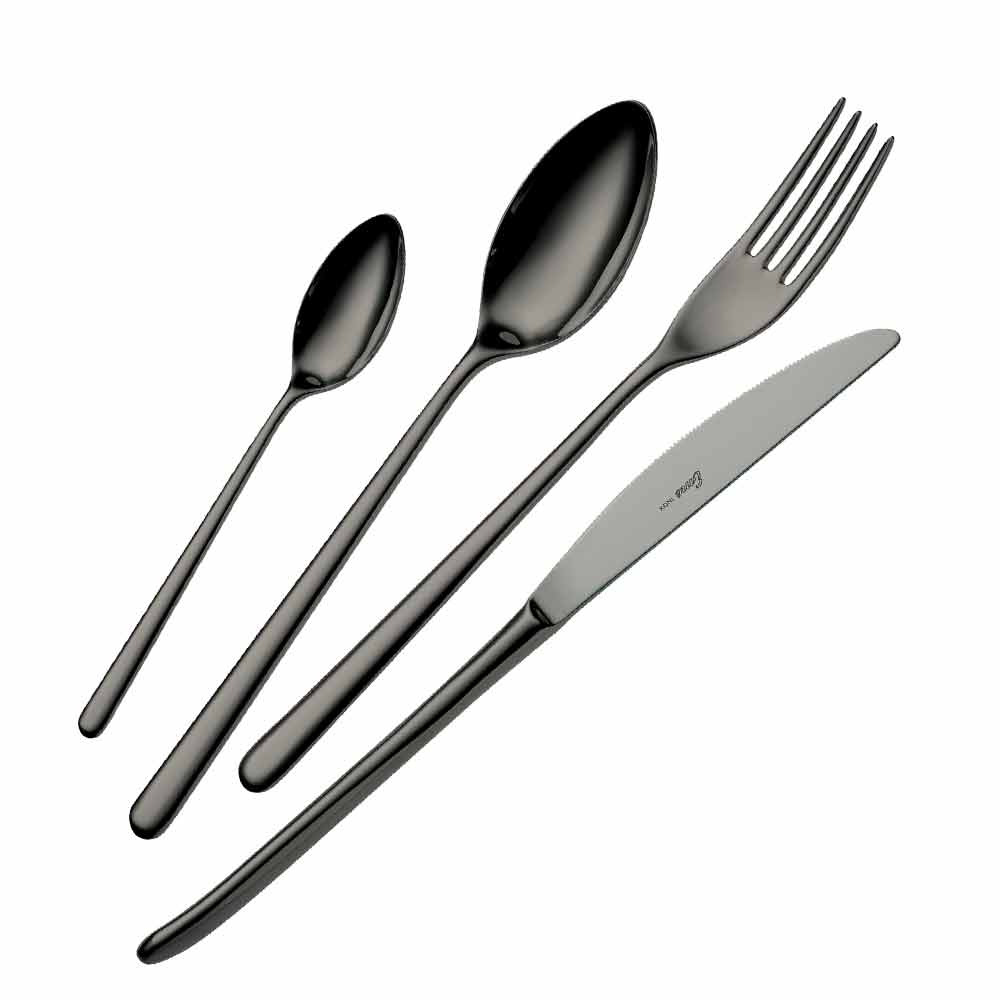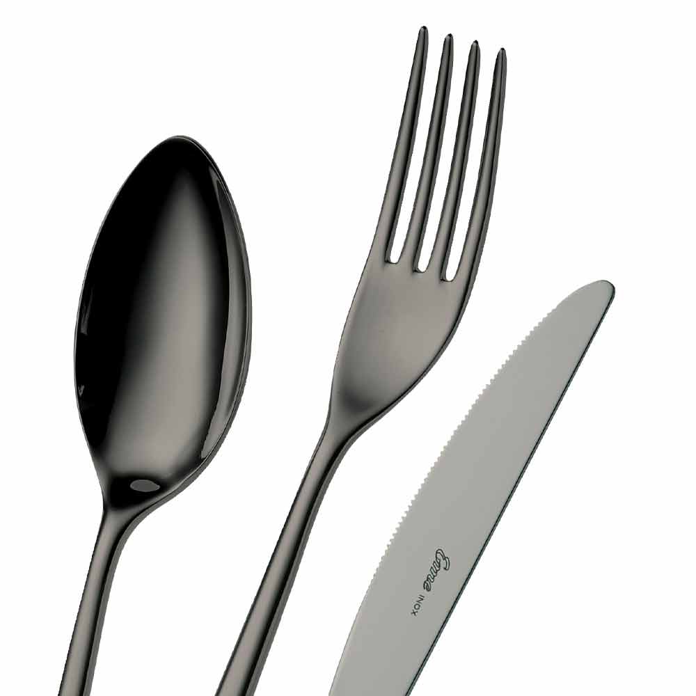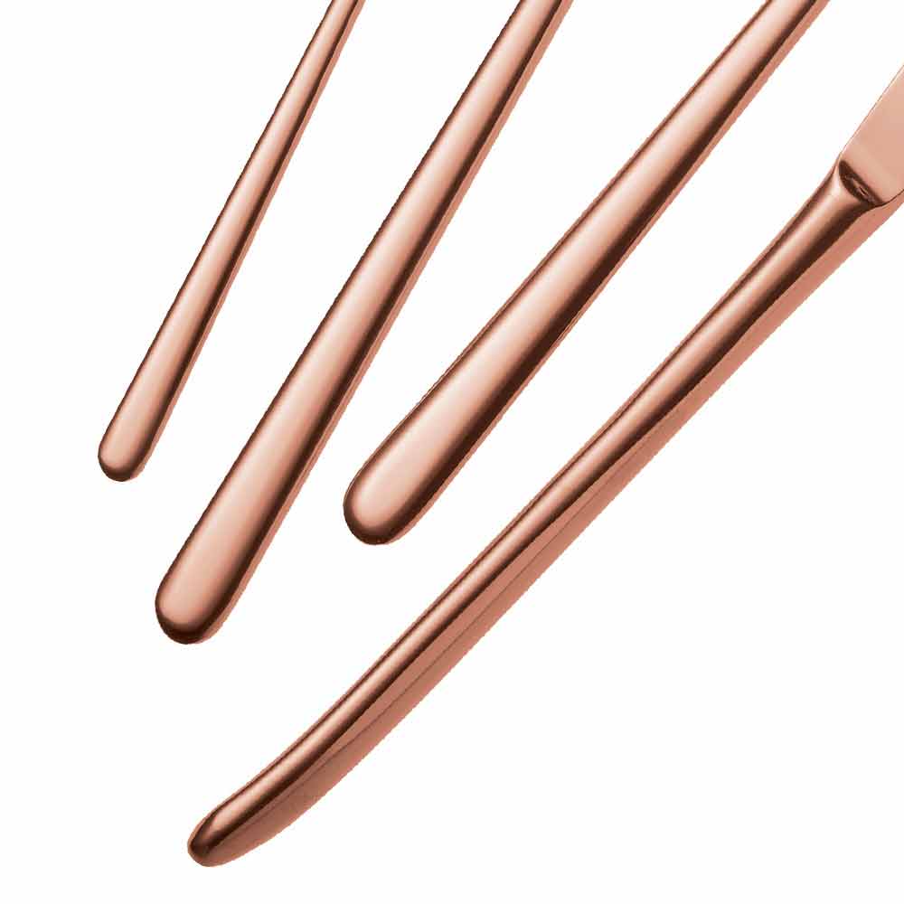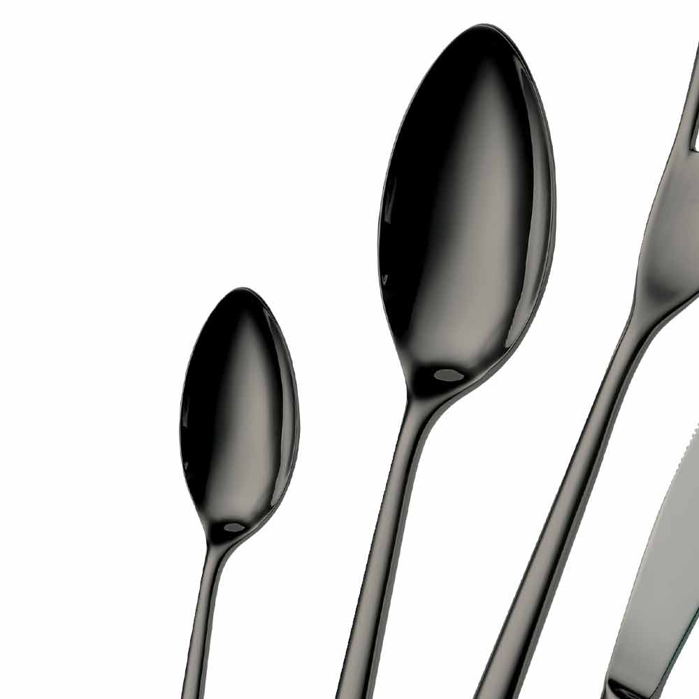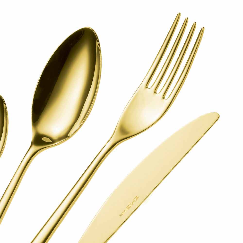 PVD es el acrónimo de Physical Vapour Deposition, que es una tecnología utilizada para colorear acero en cámaras de vacío especiales donde se rocían con vapor películas de metal muy delgadas, que se condensan en los cubiertos. Este tratamiento, con una gama de maravillosas tonalidades de color, además de embellecer los cubiertos, los hace más resistentes al desgaste y a los arañazos y es un recubrimiento perfectamente sostenible apto para uso alimentario.