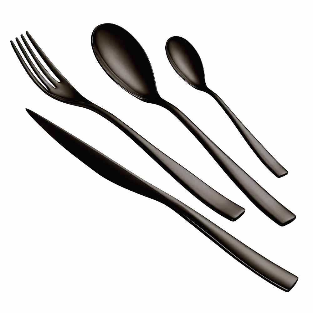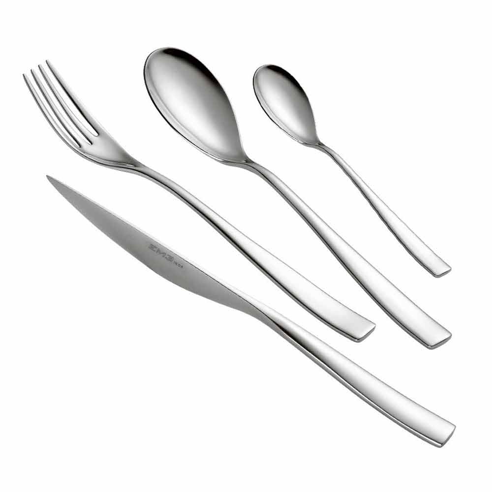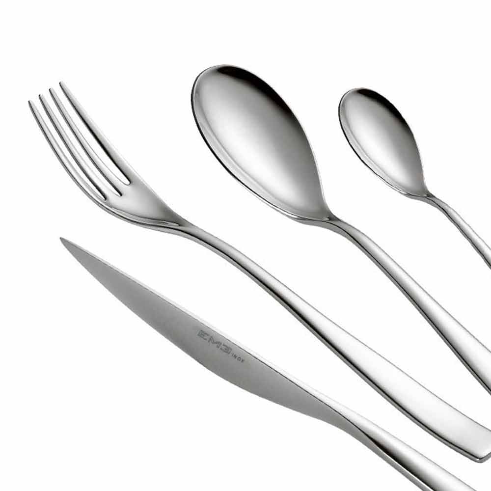 24 cubiertos de acero inoxidable con 6 acabados disponibles, diseño moderno de lujo made in Italy.
