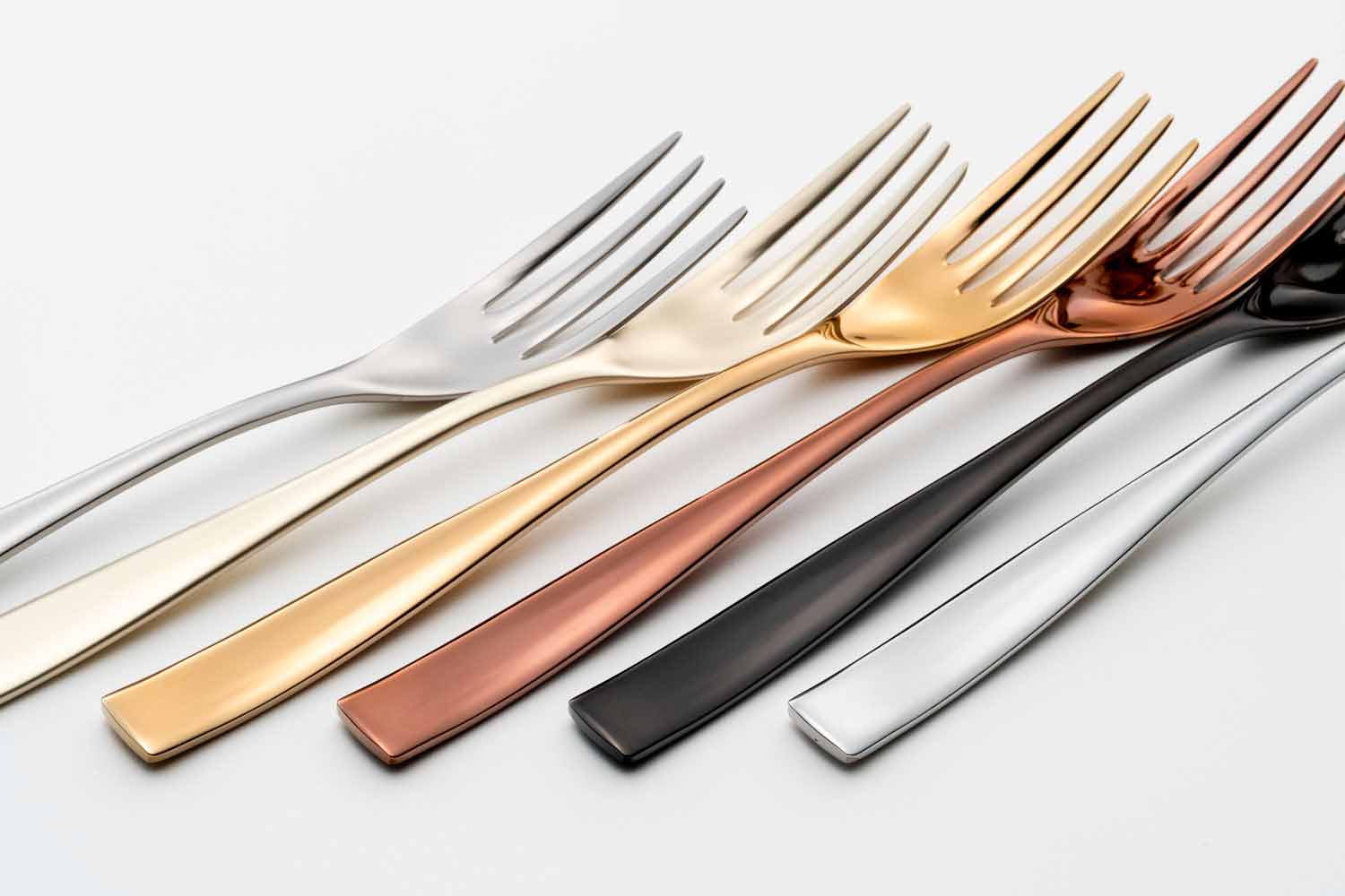 PVD es el acrónimo de Physical Vapour Deposition, que es una tecnología utilizada para colorear acero en cámaras de vacío especiales donde se rocían con vapor películas de metal muy delgadas, que se condensan en los cubiertos. Este tratamiento, con una gama de maravillosas tonalidades de color, además de embellecer los cubiertos, los hace más