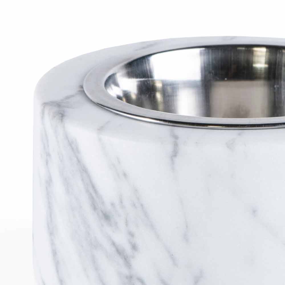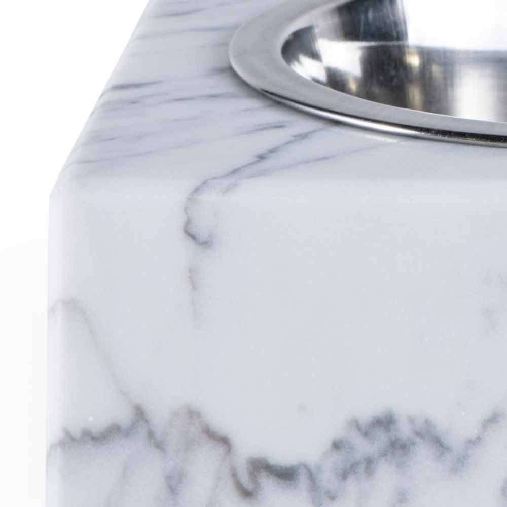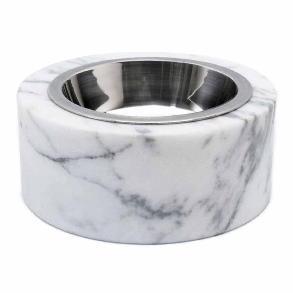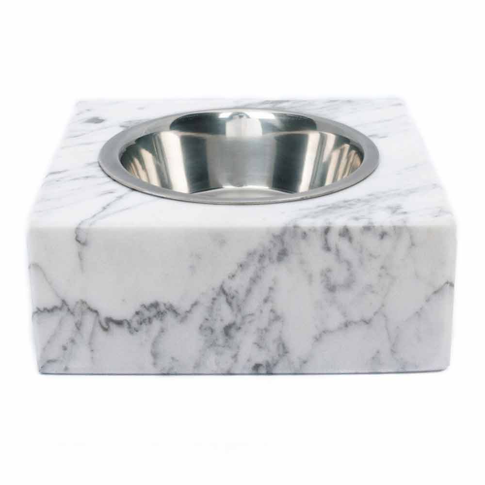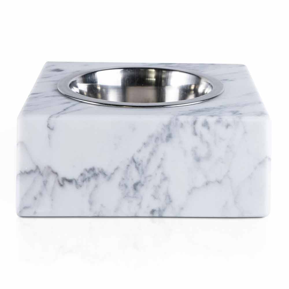 Cuenco para perros y gatos caracterizado por el mármol blanco de Carrara que lo compone. Es una pieza única ya que cada bloque de mármol utilizado se diferencia de los demás por vetas y matices.
