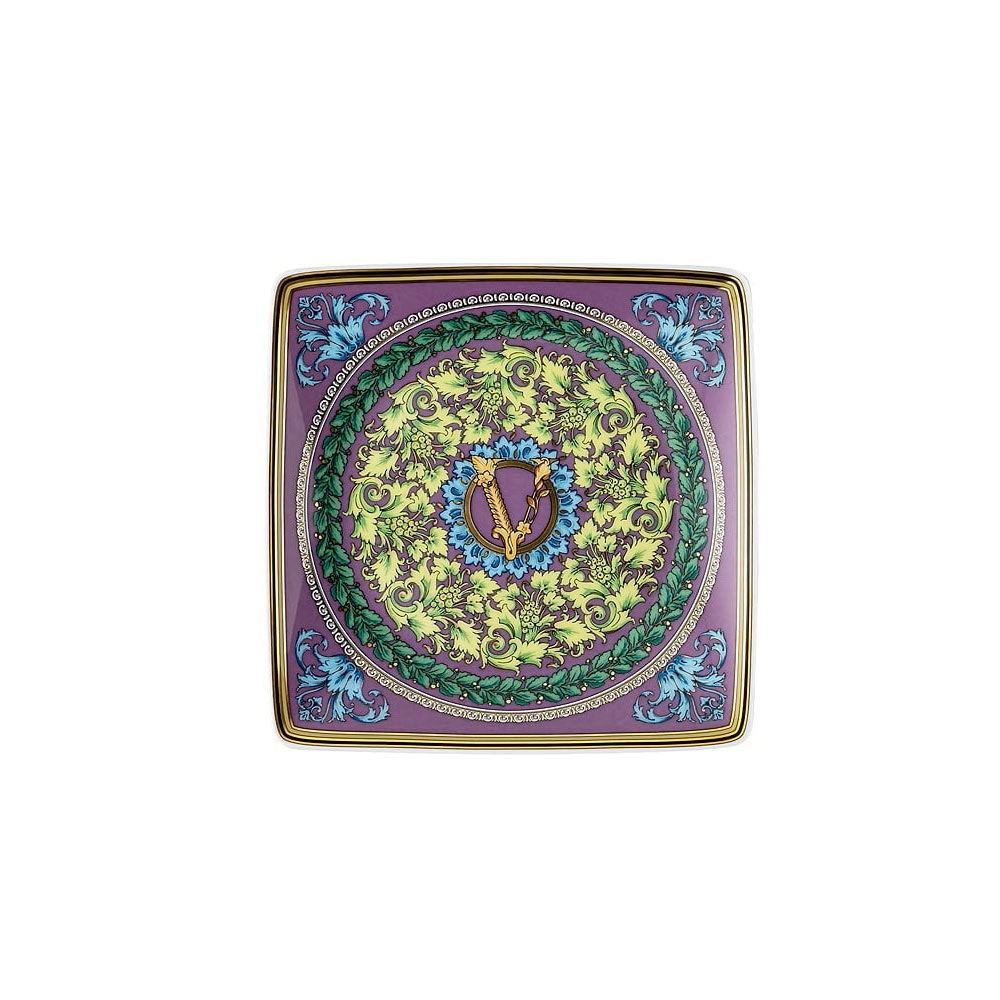 El cuenco Barocco Mosaic de Versace , en porcelana fina , es una impresionante celebración del arte y el lujo italianos . Su cautivador diseño presenta un intrincado mosaico barroco, enriquecido con vibrantes tonos de púrpura, verde y azul que se entrelazan armoniosamente alrededor de la "V" central de Versace. Símbolo, emblema de elegancia y refinamiento.