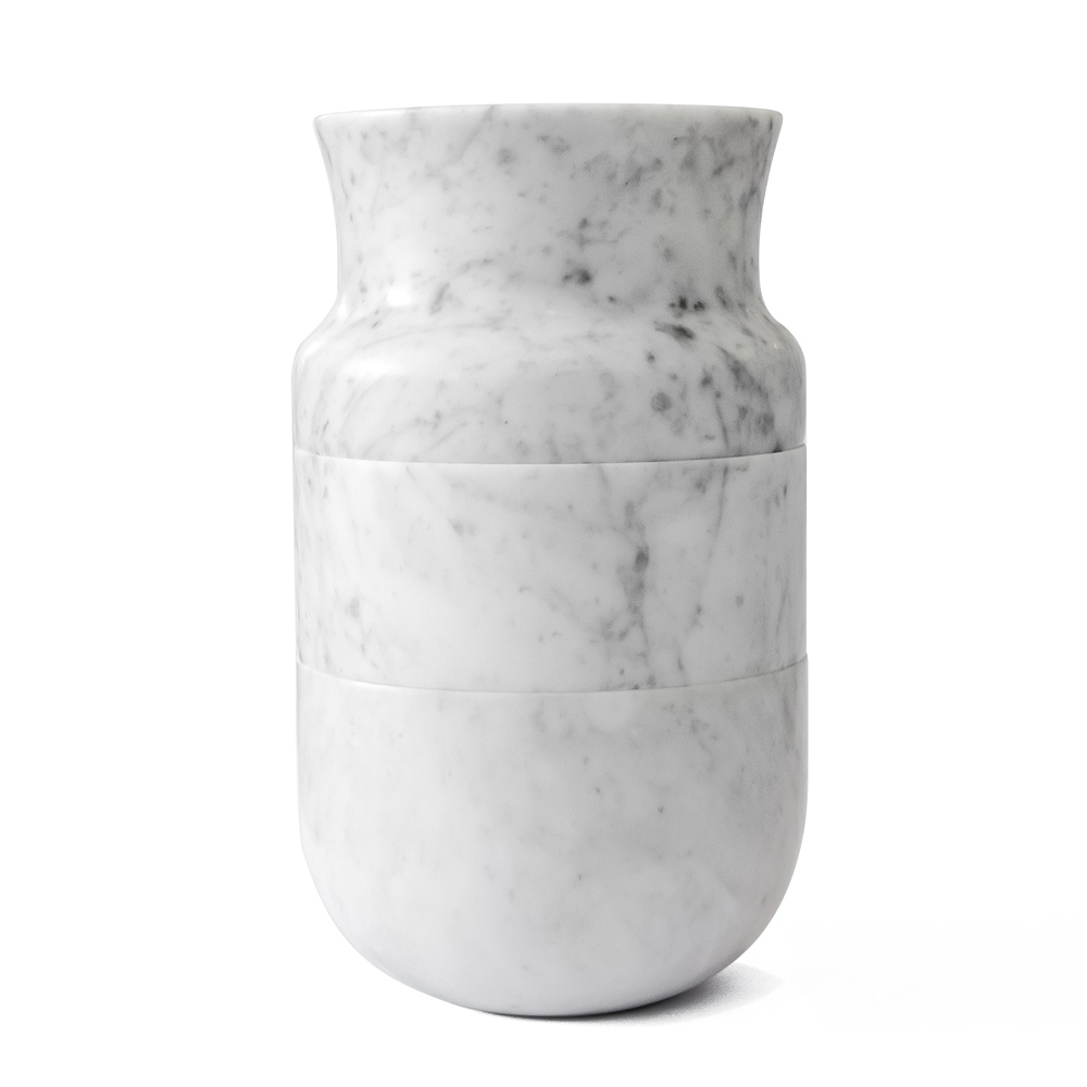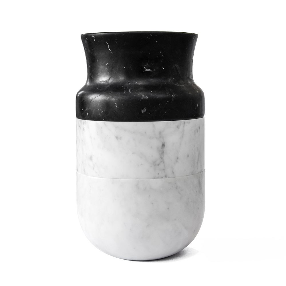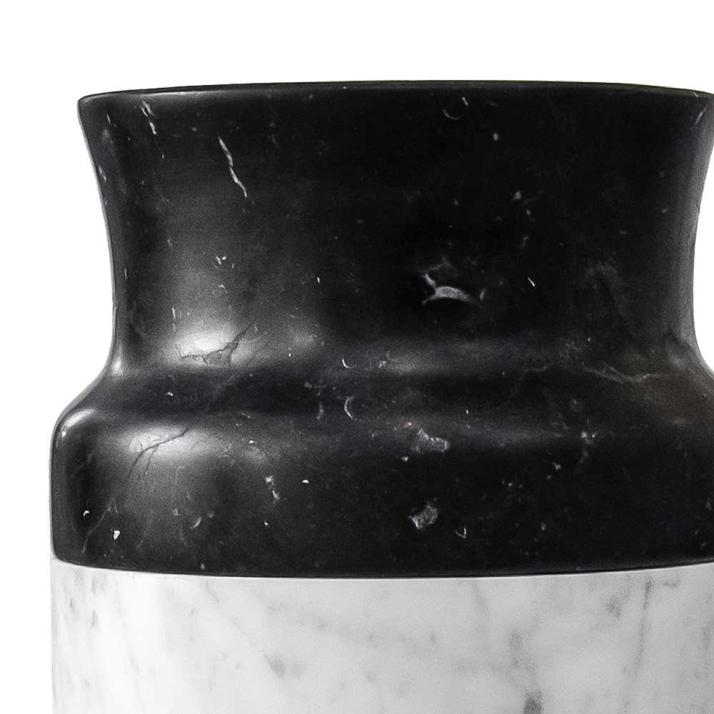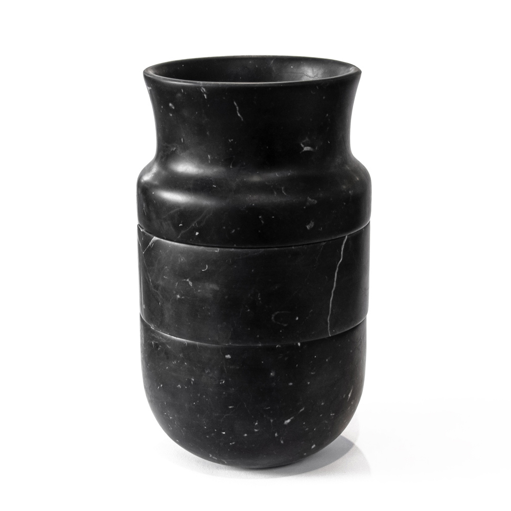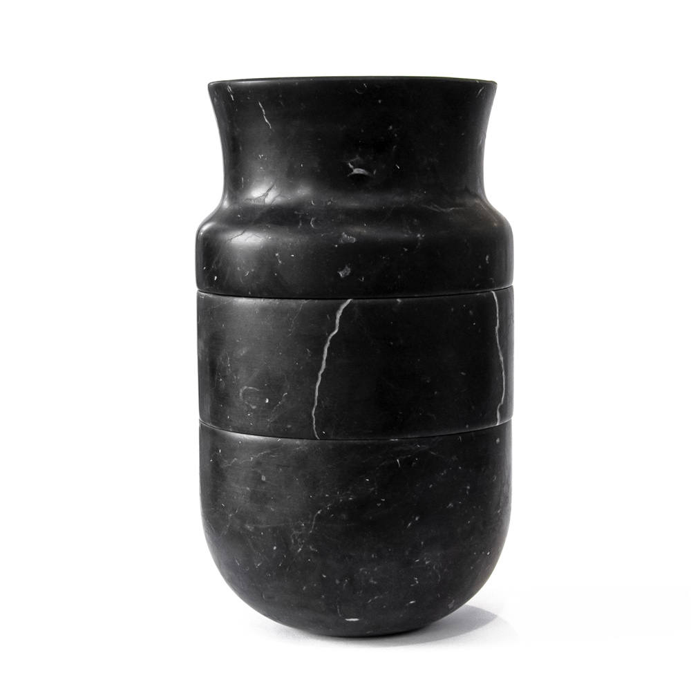 Jarrón decorativo en 3 partes de diseño en mármol blanco de Carrara o Marquinia negro fabricado en Italia.
