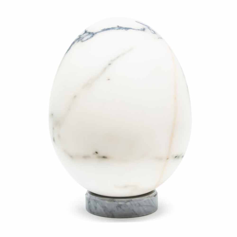 Este huevo de mármol morado de decoraciónse caracteriza por un diseño elegante y precioso de alta calidad y valor, ideal como mueble de lujo y refinamiento extremos. Debe considerarse una pieza única ya que cada bloque de mármol utilizado se diferencia de los demás en cuanto a vetas y matices. El mármol de Paonazzo es un litotipo compacto, de grano fino, con un color general marfil, que tiende localmente al amarillo beis y al rojo violáceo, con vetas irregulares, también anastomosadas, de color negro, verdoso, limitado a matices violáceos, con áreas amarillentas con un sub paralelo. tendencia a las venas, debido a la presencia de óxidos de limonita y hematita.
