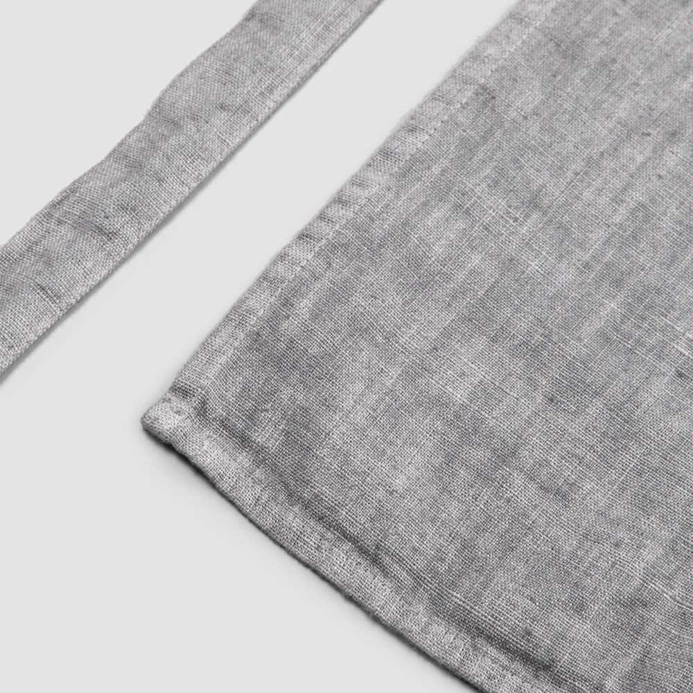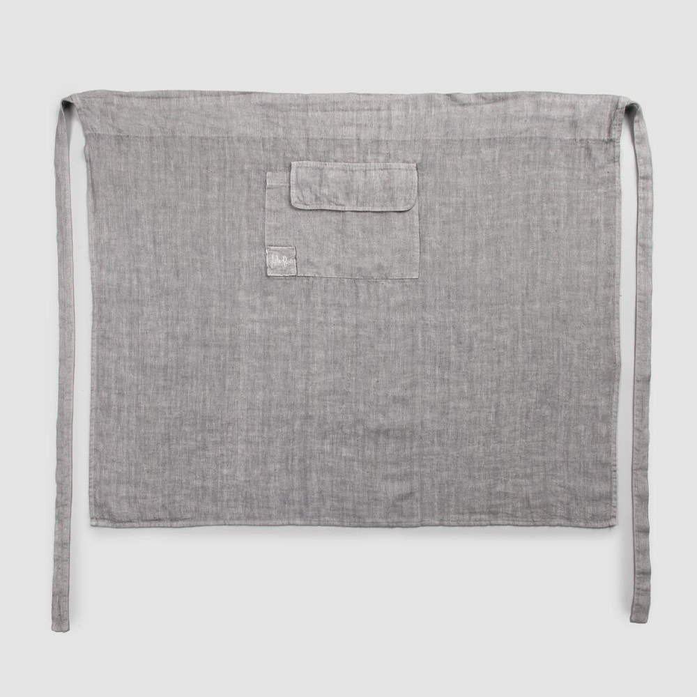Delantal de cocina en lino gris antracita con bolsillo, modelo bajo fabricado en Italia.