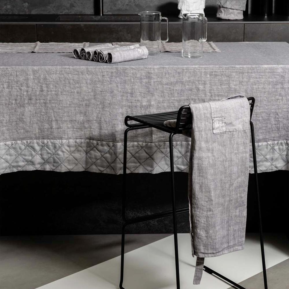 El valor de la tradición se une al estilo de vida moderno con este delantal de cocina de lino gris antracita en estilo pub bajo con bolsillo. Confeccionado en lino 100% de alta calidad y suavizado al tacto gracias a tratamientos especiales que realzan su aspecto natural. La tela es ideal para la mesa porque es hipoalergénica y antibacteriana , además del uso de tintes naturales e hipoalergénicos que le dan brillo y garbo. Ligereza , libertad, elegancia y pureza son las palabras clave contenidas en este producto de noble encanto y fino tejido .