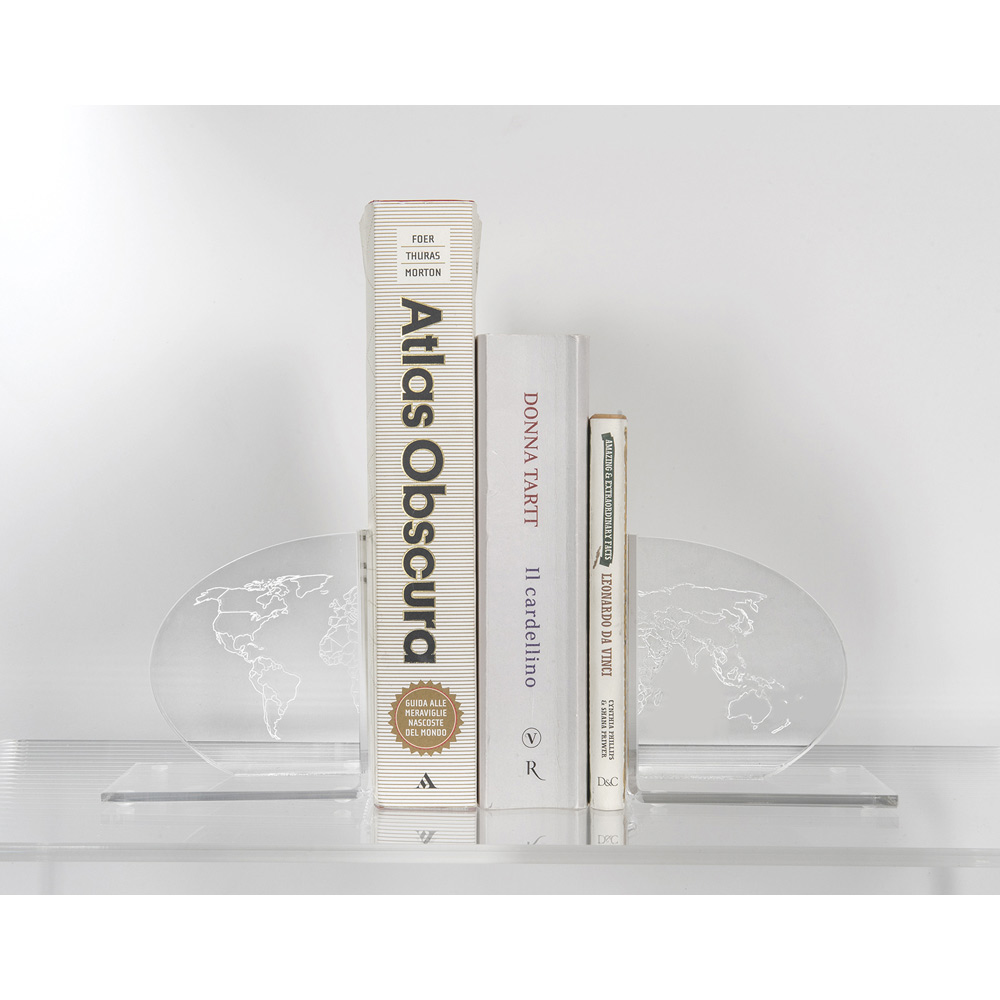 Sujetalibros en plexiglás transparente, diseño de mapa 2 piezas made in Italy.