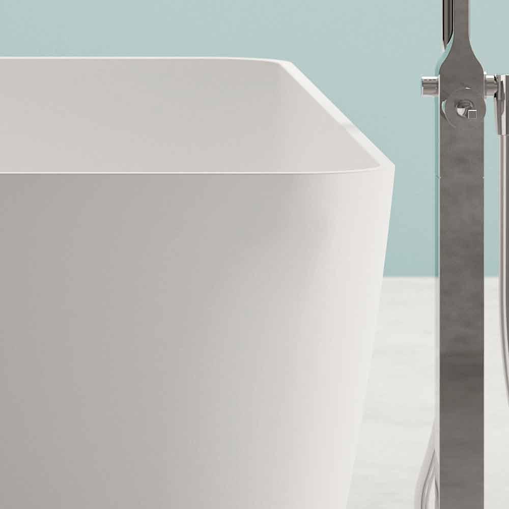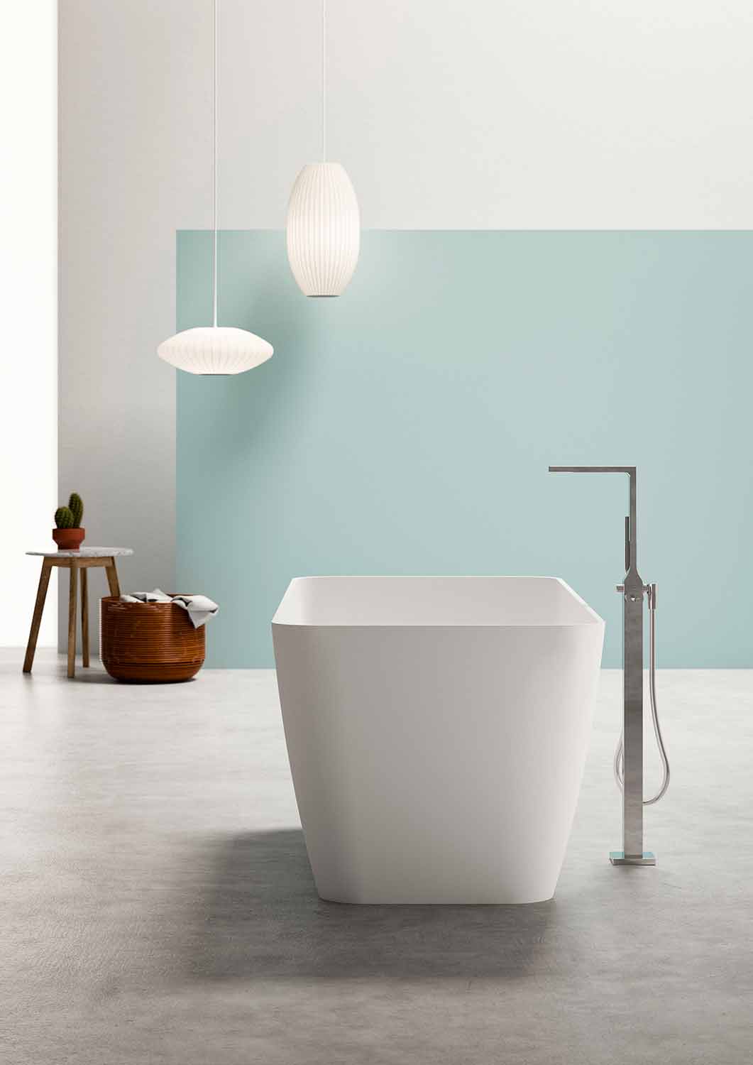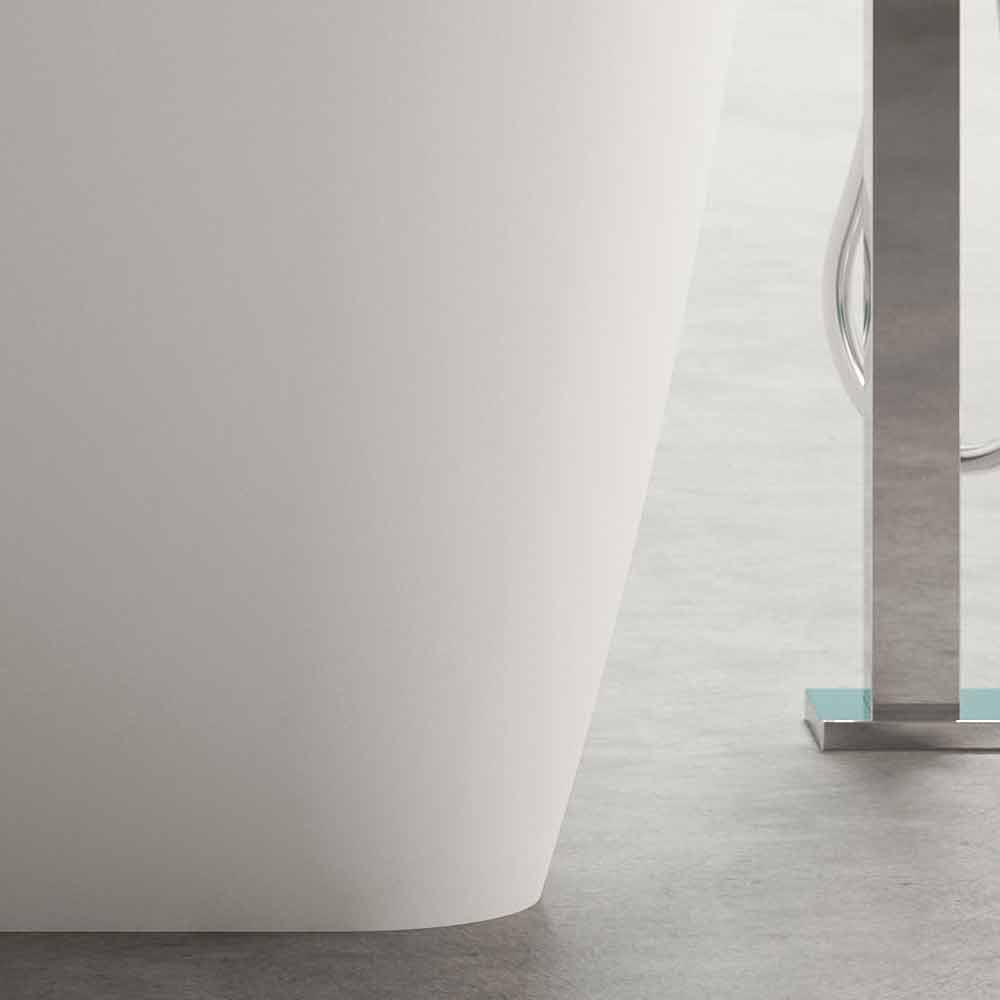 ofrece al diseño una gama ilimitada de posibilidades técnicas y estéticas . Su tacto sedoso y cálido combinado con su aspecto mineral y su indicación de reflexión de la luz lo convierten en un material capaz de transformar cualquier elemento en el protagonista del baño.