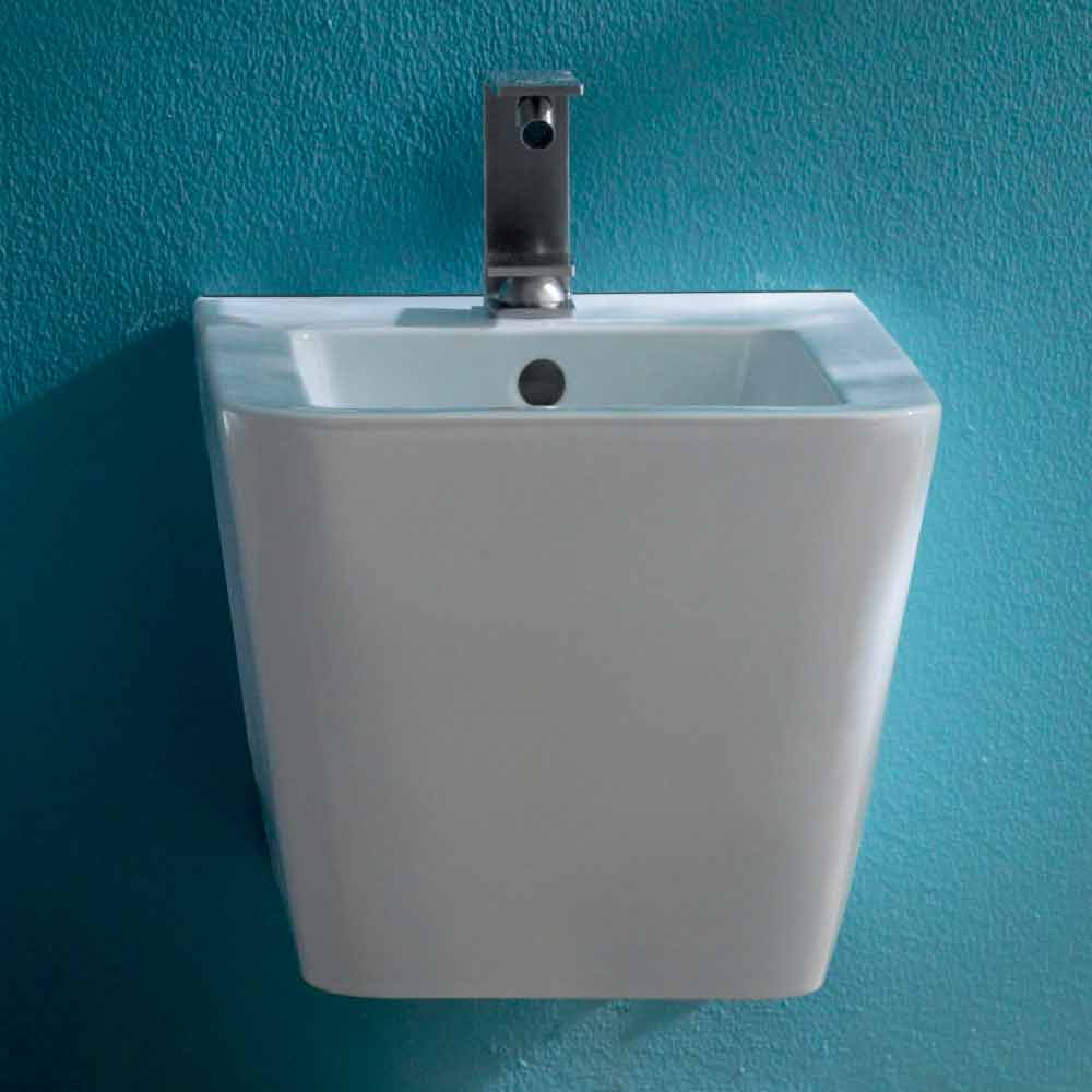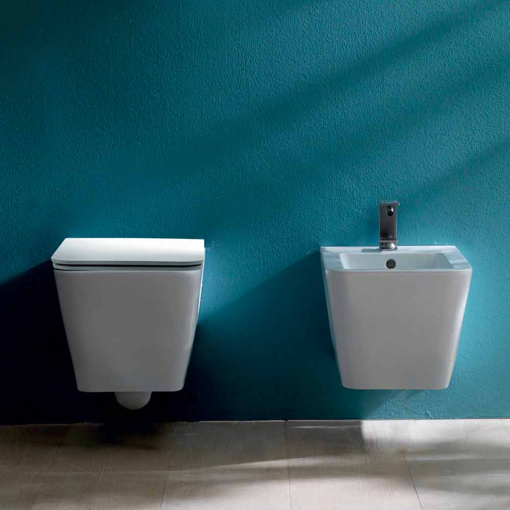 Bidé de cerámica de diseño suspendido Sun Square 55x35cm, hecho en Italia Bidé cerámico suspendido con soportes de fijación y fijación rápida incluidos.