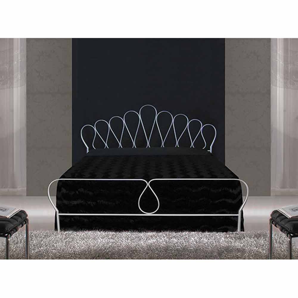 La cama de hierro forjado en la variante CABECERO DOBLE CON SOPORTE DE CAMA requiere la inserción de un somier de 160 X 190 que se debe aplicar apoyado sobre el somier. En caso de que existan necesidades particulares relacionadas con la conformación física, con la combinación con somieres existentes o simplemente con la estética, este modelo, gracias a nuestra productividad artesanal, se puede modificar tanto en altura como en longitud.