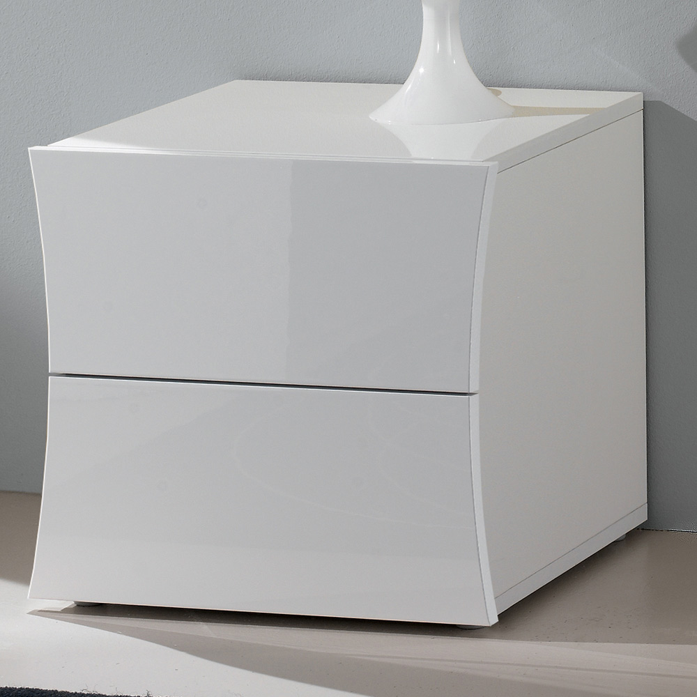 La mesita de noche de 2 cajones se caracteriza por su diseño en forma de arco con líneas suaves y curvas, con un aspecto atractivo e interesante.