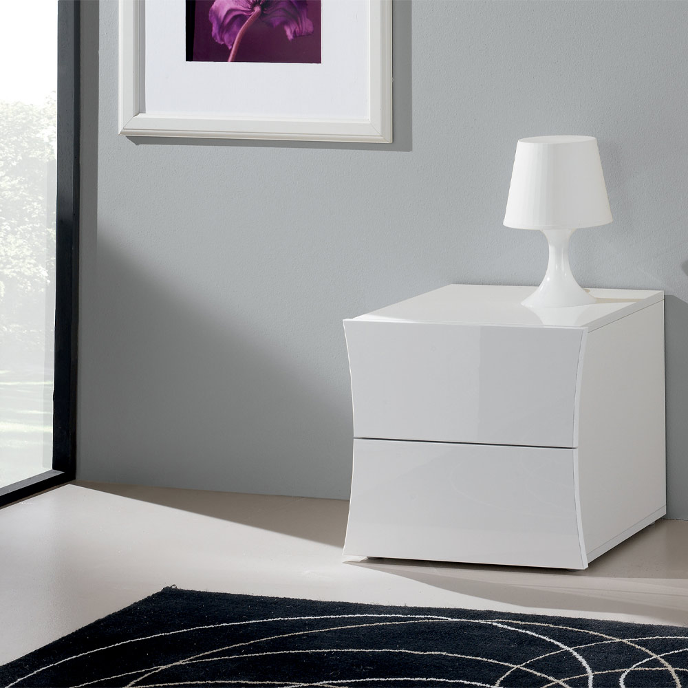 Mesita de noche con 2 cajones para el dormitorio de diseño blanco, made in Italy.